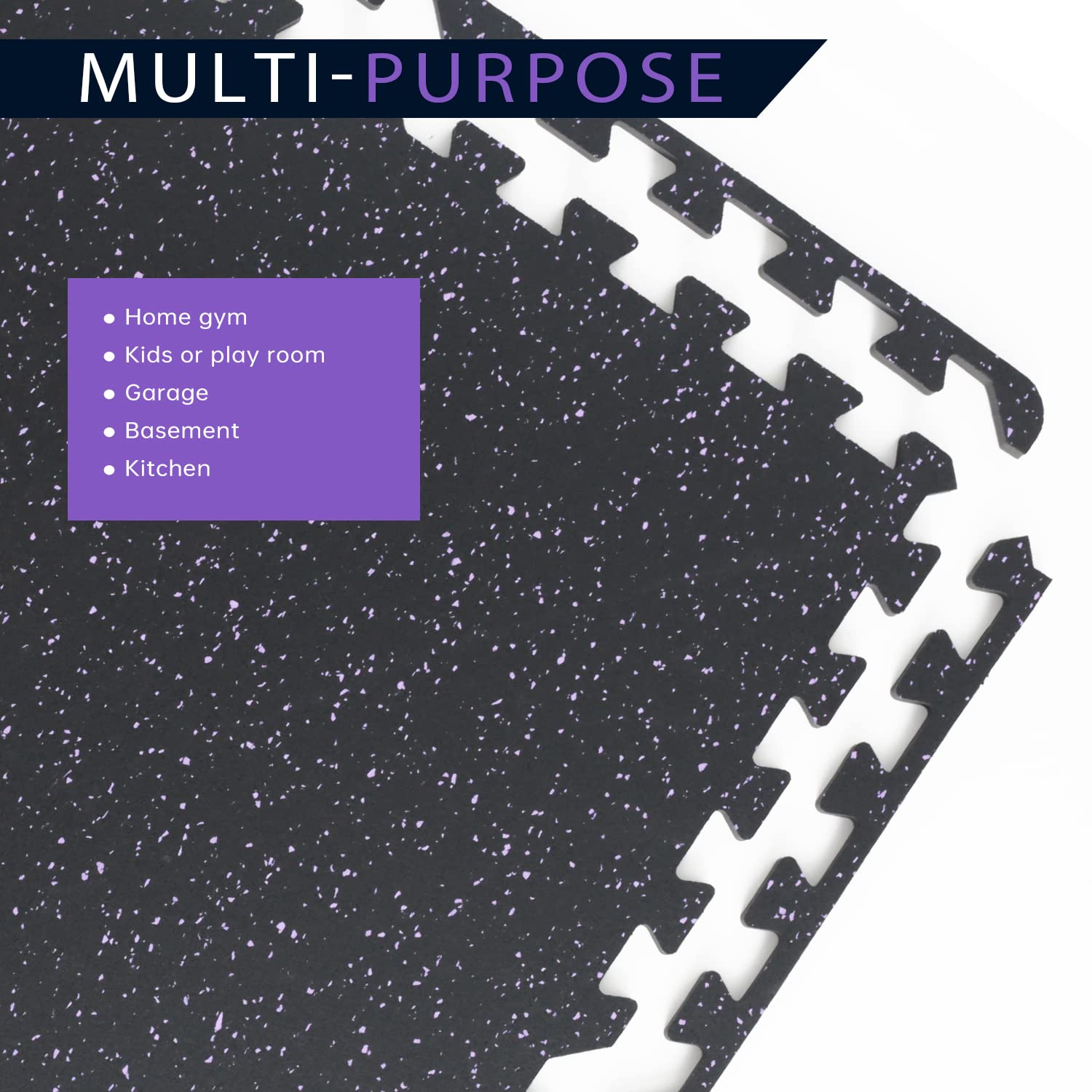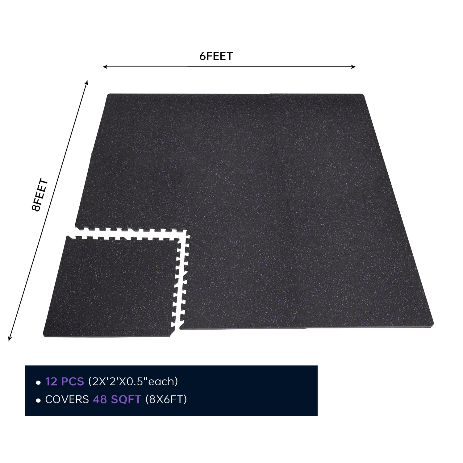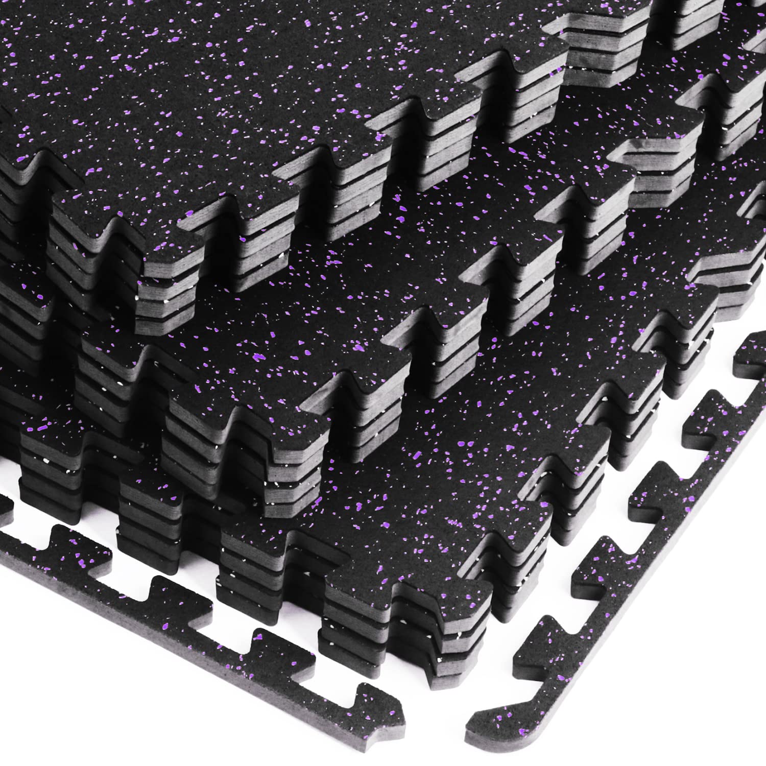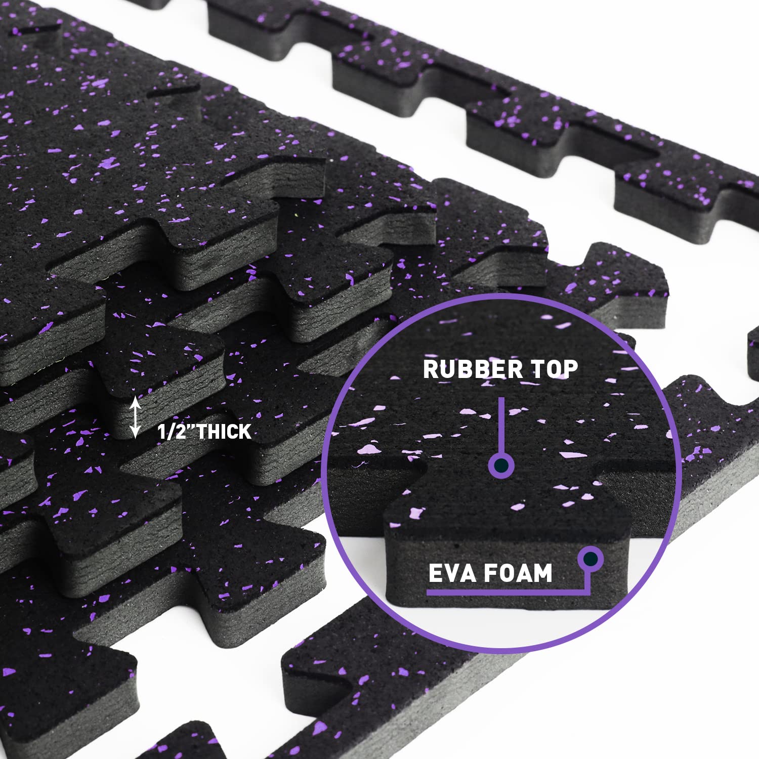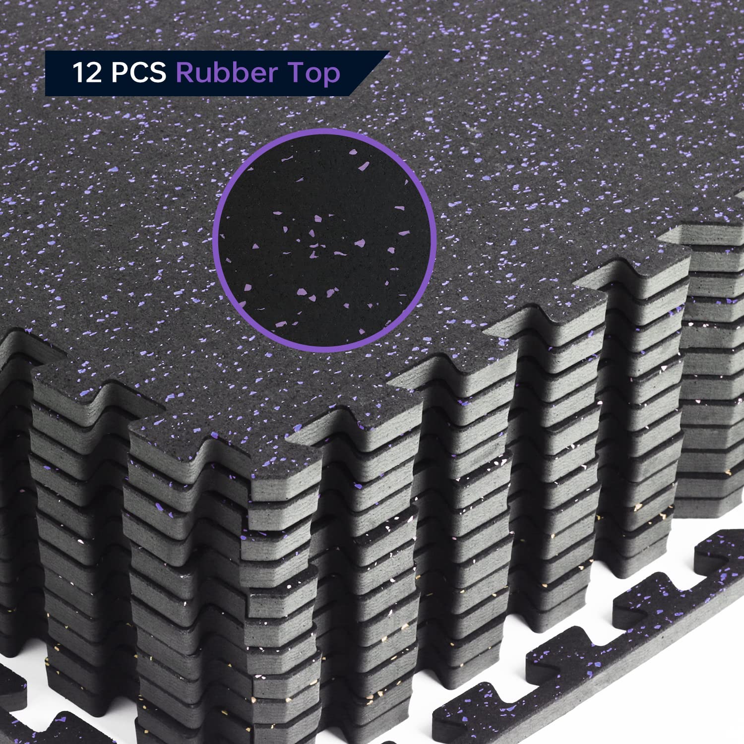 0.56" Thick 48 Sq Ft Rubber Top High Density EVA Foam Exercise Gym Mats 12 Pcs - Interlocking Puzzle Floor Tiles for Home Gym Heavy Workout Equipment Flooring - 24 x 24in Tile, Black&Purple