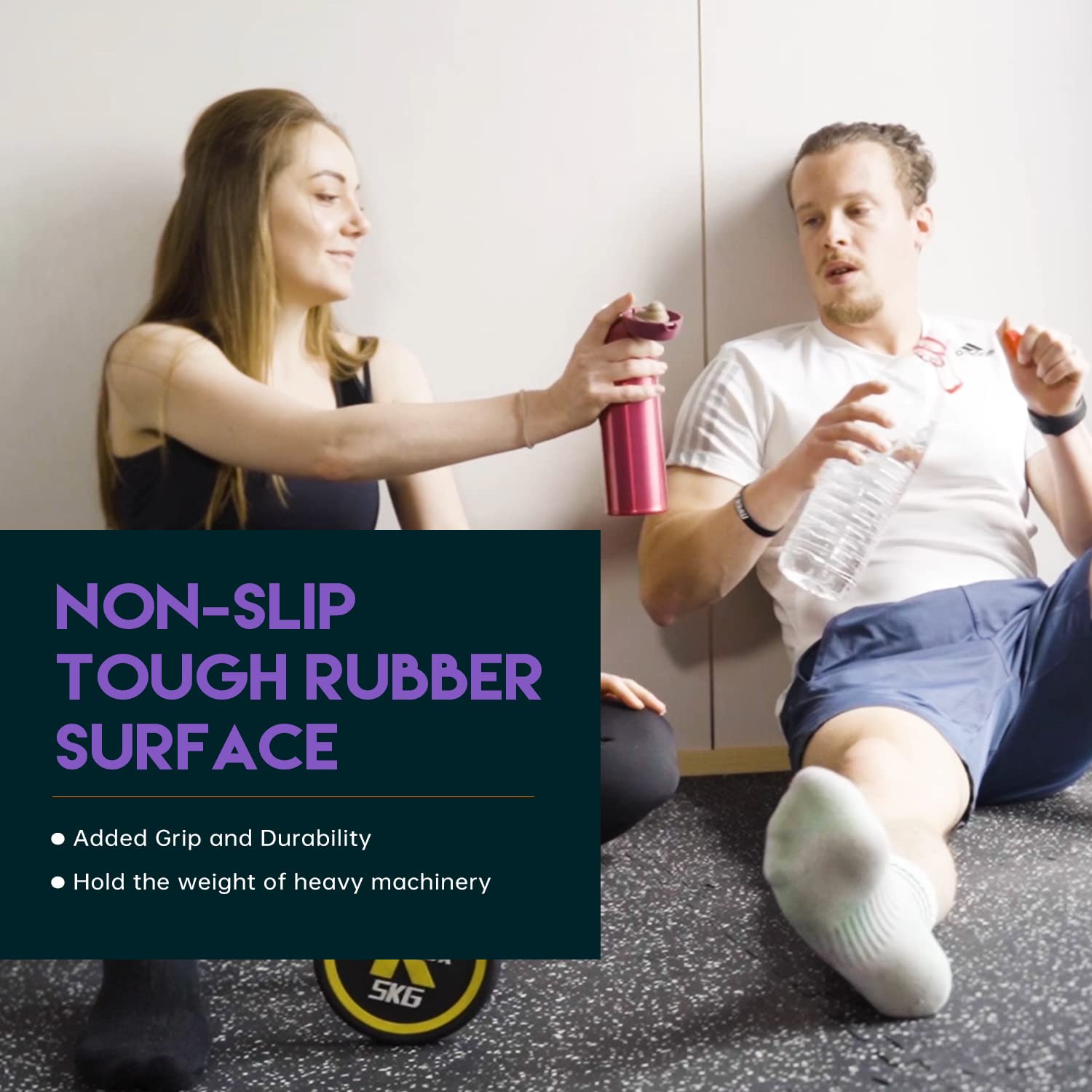 - Recycled Rubber- Feeling Great Under Bare Feet: The home gym flooring is Made of environmentally friendly recycled rubber. You will like the feel of walking on it, exactly like the floor at the gym. This flooring was the perfect addition to Home Gym for online fitness classes with lots of impacts, core training, and more. Please note: It does carry a rubber smell, airing out the room for a couple of days will be better