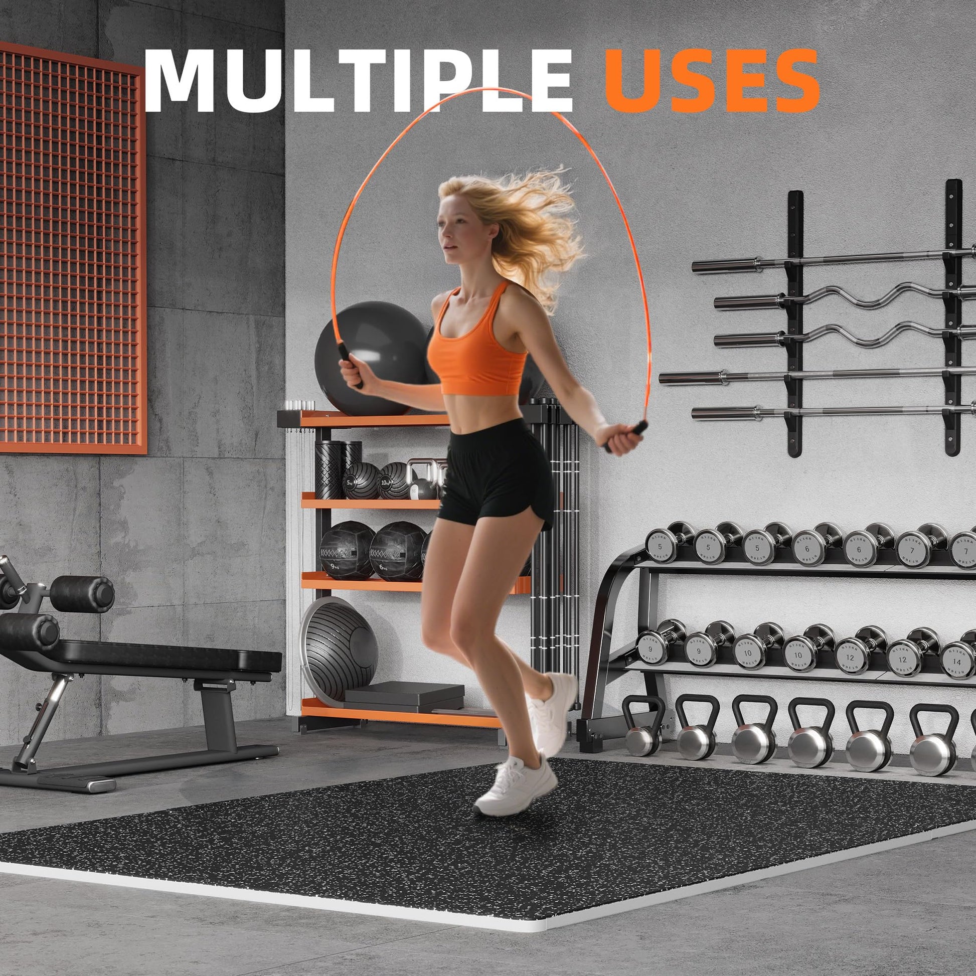 - ULTRA GRIP RUBBER SURFACE: The workout mats provide superior floor traction and grip, preventing slipping during exercise, and can also protect your floor. Non-slip tough surface create your own workout space with this high-quality gym floor mat. It works perfectly on most floors, such as wooden floors, tile floors, marble floors, carpets, etc.