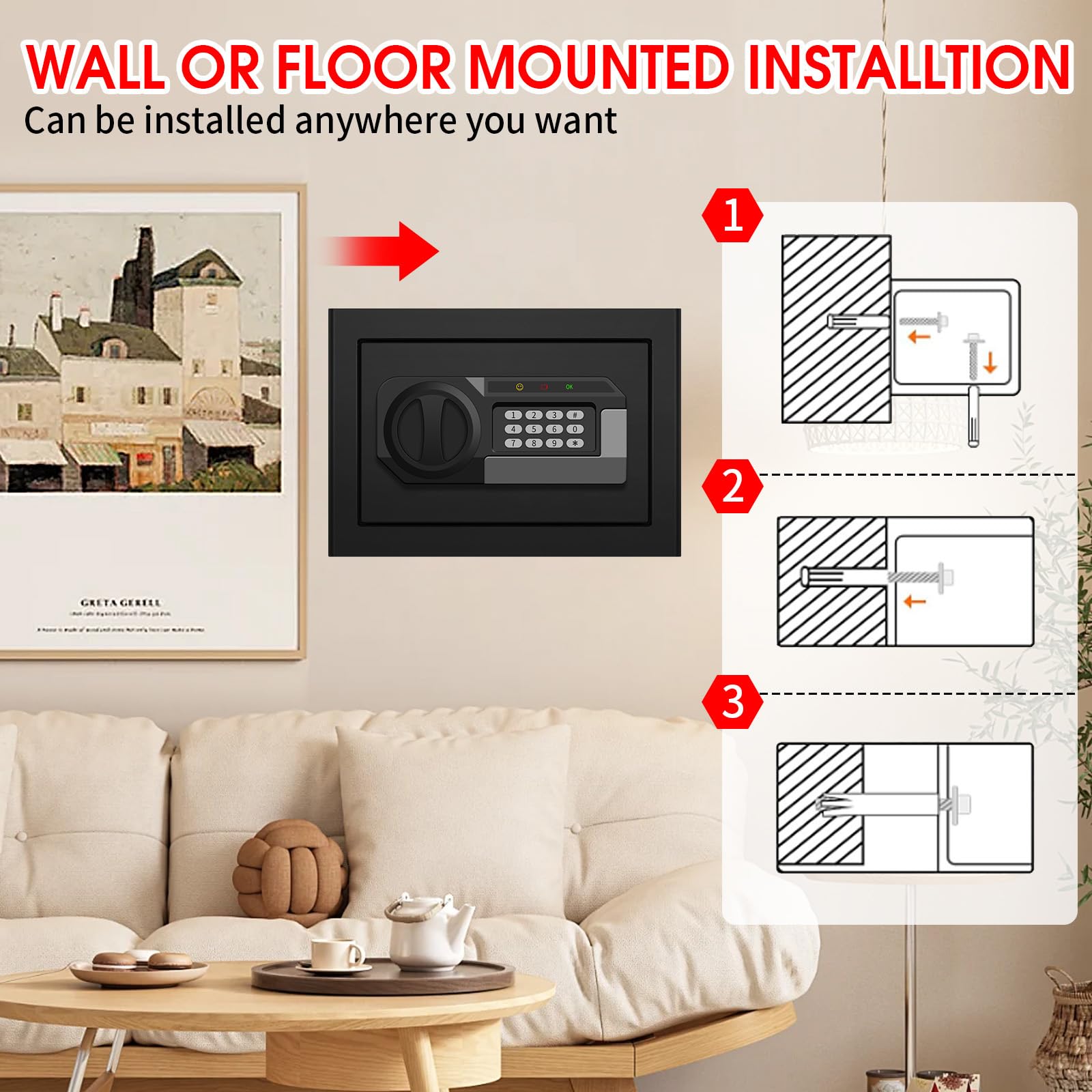 - 🔥🔥🔥【DURABLE STEEL CONSTRUCTION】: Constructed with SPCC steel, this safe is strong and reliable. It features two 20 mm diameter solid bolts, providing maximum security and protection for your valuables; The safe has undergone rigorous testing, proving its outstanding durability and material quality