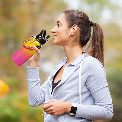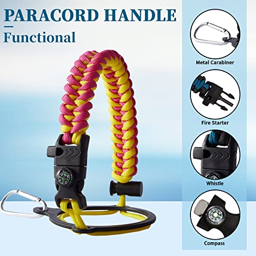 - PERSONALIZATION BOTTLE PARACORD HANDLE - 128oz Insulated water bottle with a pretty cool functional paracord handle which does more than meets the eye.?The survival strap cord is made of military-grade nylon and comes with a compass, safety loop, metal carabiner, flint, igniter, and whistle, making it a functional and stylish addition to your water flask, is perfect for outdoor camping, hiking, fitness enthusiasts