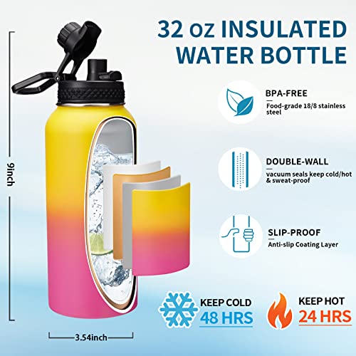 1 Gallon Water Bottle with Straw - 128oz Stainless Steel Water Jug with Sleeve Carrier Bag, Auto Spout Lid, Paracord Handle, Large Insulated Water Bottles Gallon Water Jug, Metal Hydro Thermo Flask