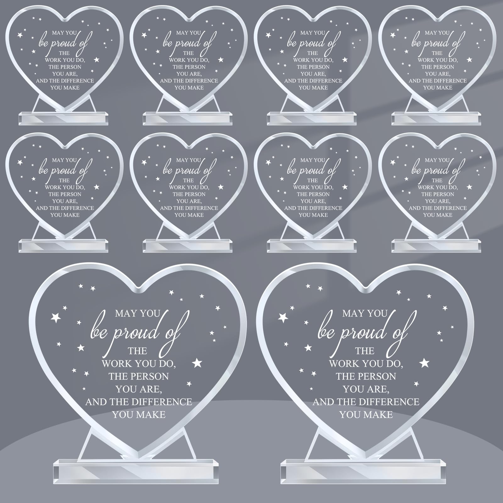 10 Pcs Employee Appreciation Awards for Coworker Acrylic Thank You Trophy May You Be Proud of The Work You Do Sign Prizes for Adults Retirement Goodbye Farewell Gift for Women Men (Heart)