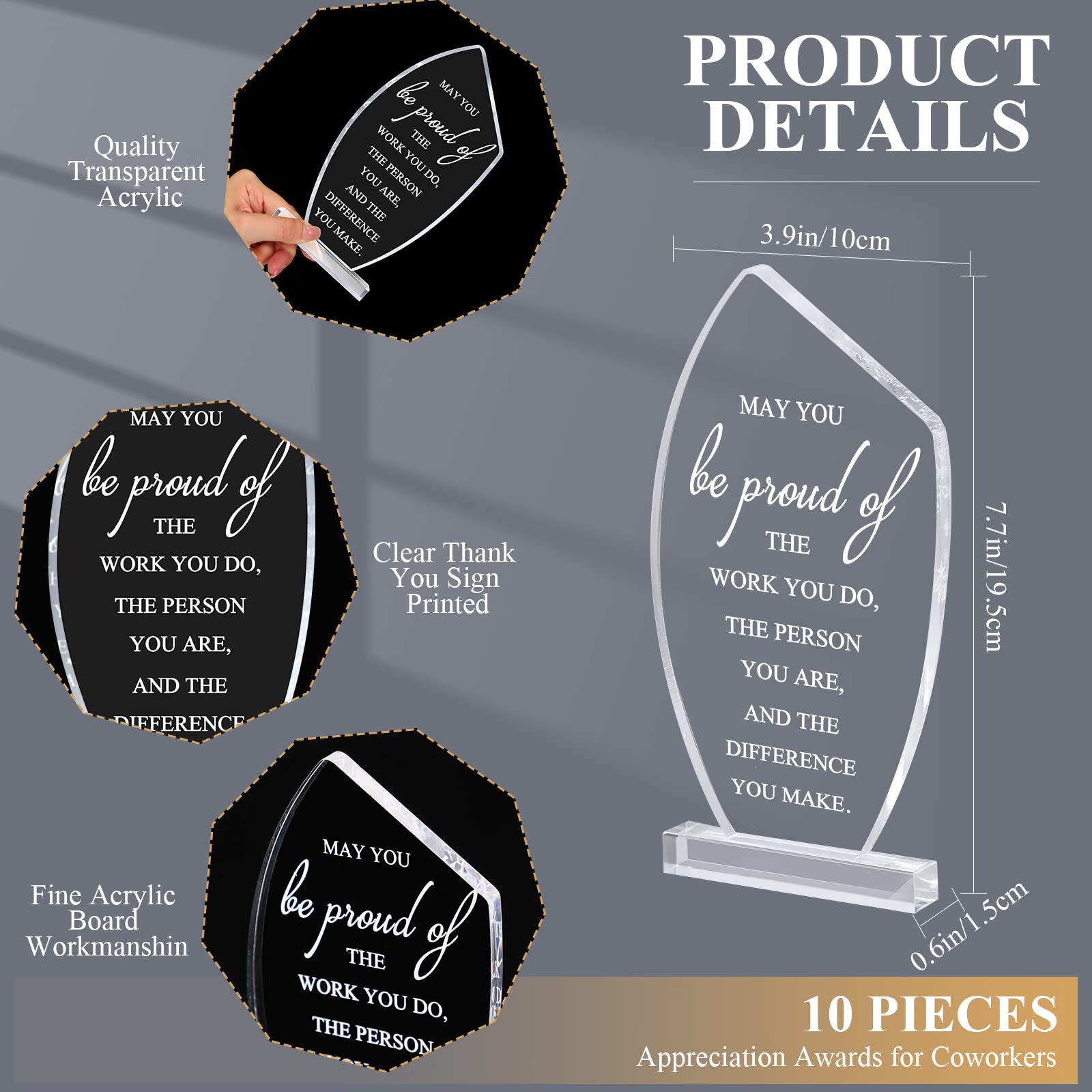 10 Pcs Employee Appreciation Awards for Coworker Acrylic Thank You Trophy May You Be Proud of The Work You Do Sign Prizes for Adults Retirement Goodbye Farewell Gift for Women Men (Simple)