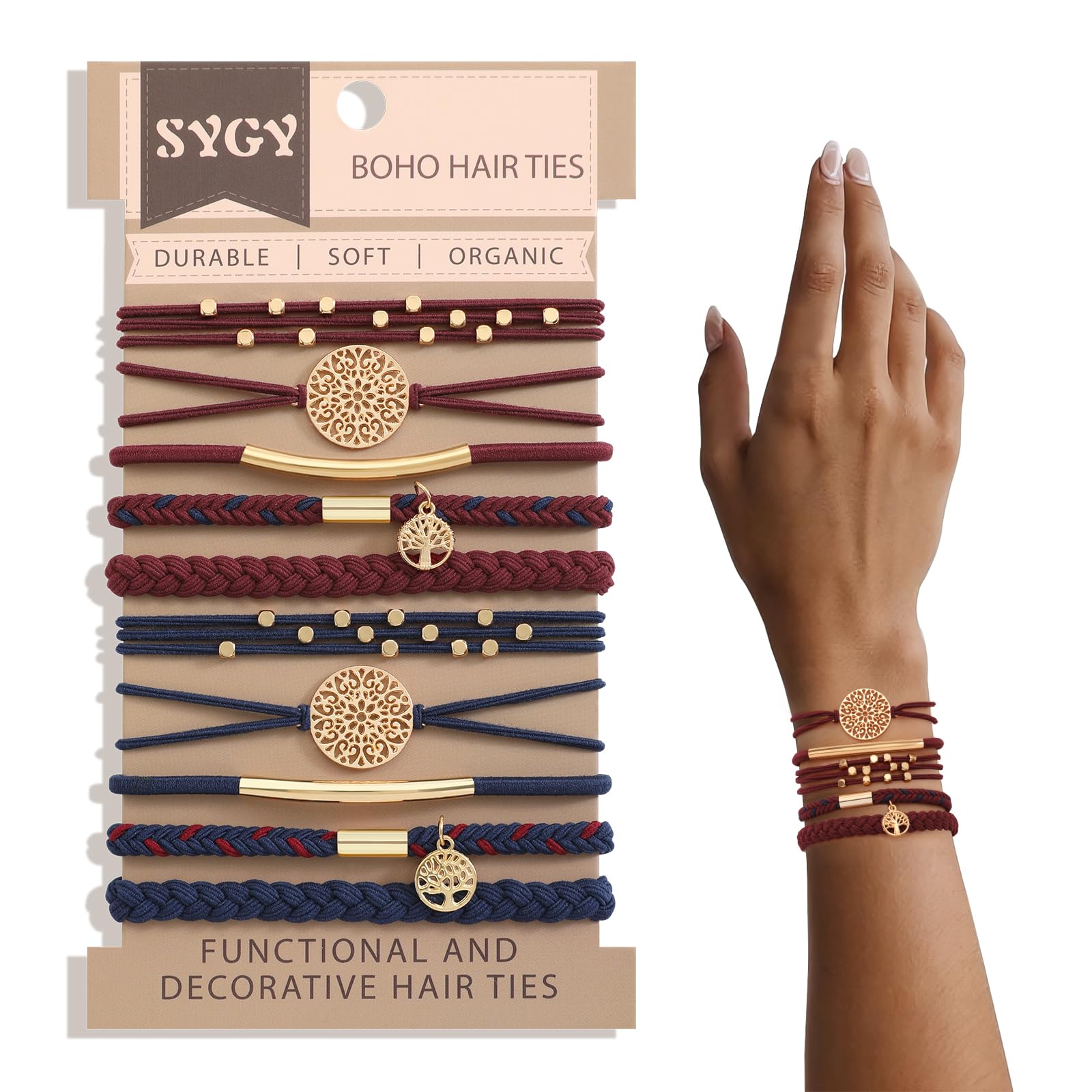 - ⭐【2 Colors & 5 Styles】Boho hair ties come with 2 nice colors and 5 fashion styles. Each metal accessory is very unique and stylish. Hair ties are hand-braided, which are very much in line with people's aesthetic needs. They can go well with any outfits.