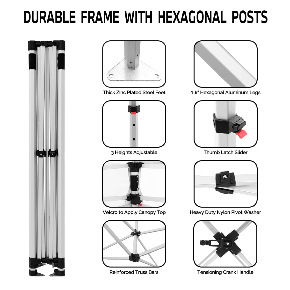 - BEST IDEA FOR OUTDOOR PROMOTION - The hexagonal aluminum frame provides extreme stability and longevity for the tent canopy, with bonus stakes&ropes kit to tie your tent down securely against gusts of wind. A reliable business canopy tent for your outdoor sales and branding opportunities