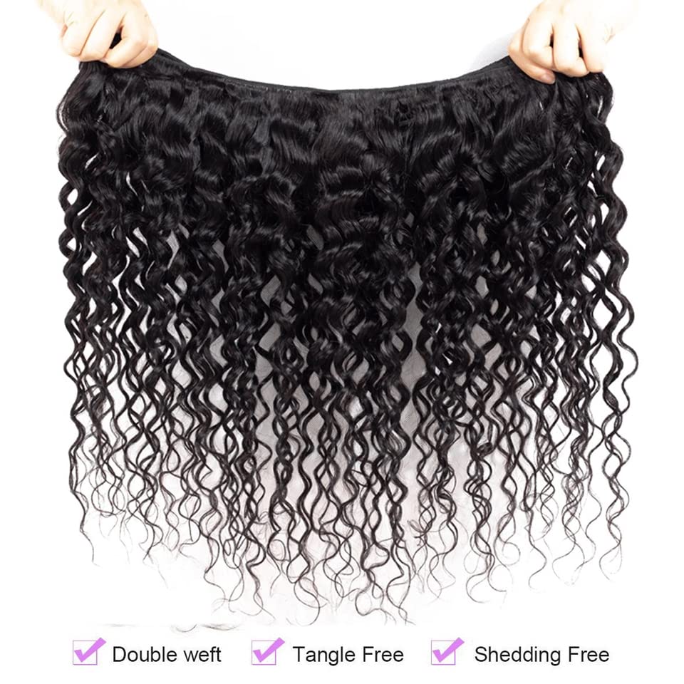 - Water Wave Bundles Hair Quality:Water Wave Human Hair Bundles,Double Strong Weft,Tight And Neat Weft,Thick And Healthy End,No Tangles,Soft And Full.Smooth And Silky Human Hair Bundles.