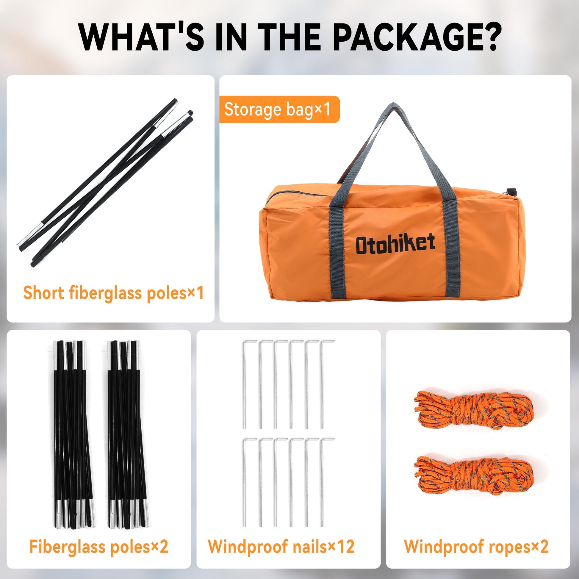 - 【Size detail and Package inlude】Our outside tent bag inclide 1 orange single tent with unfold size is 213*152*122cm(L*W*H) Accessories include: 2 Main solid fiberglass rod(7.9mm),1 short fiberglass rod(7.9mm),12 windproof nail(φ5mm*20cm) and 2 wind rope(4mm)