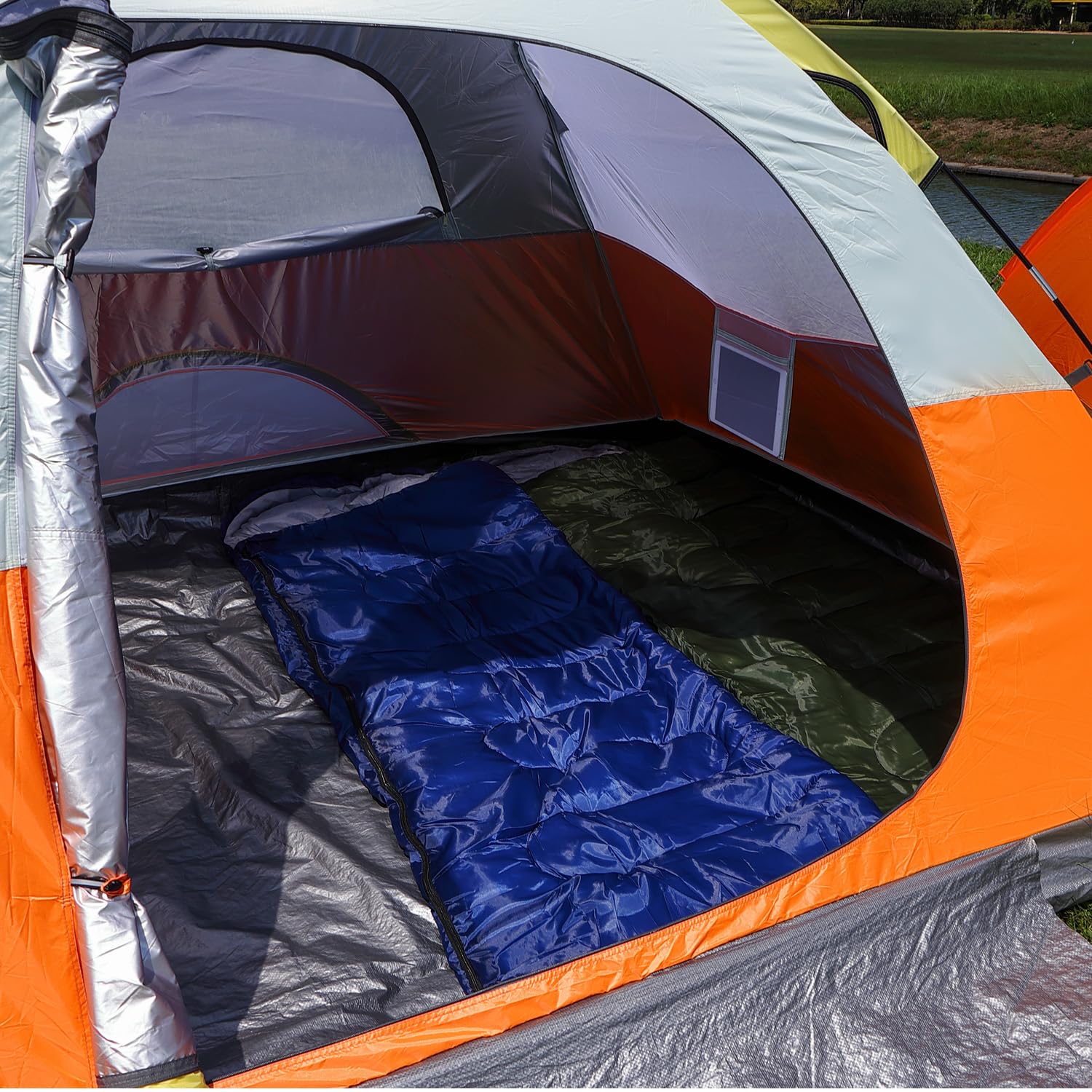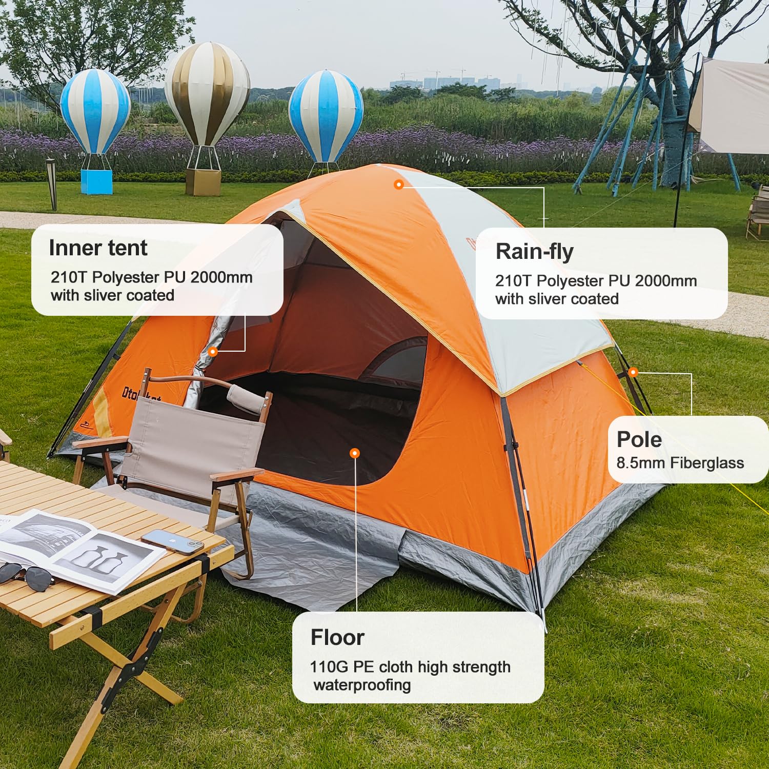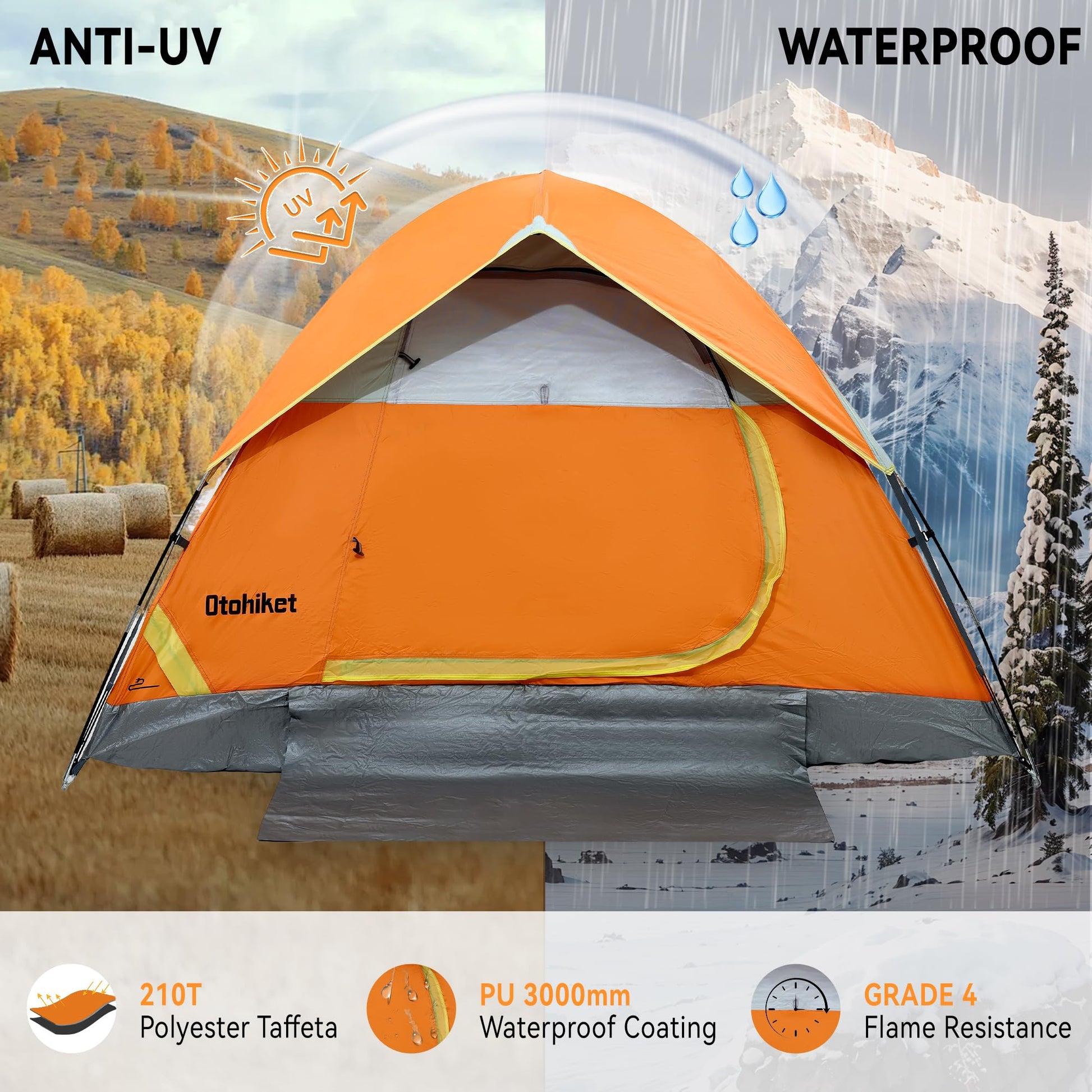 - 【Matrial and Waterproof】210T polyester cloth and flysheet provides PU2000MM sun protection, resists wind and sand.110g/m² PE cloth at the bottom witch is highly waterproof.This dyeing cloth has well firmness of coloring, bright and safe orage color