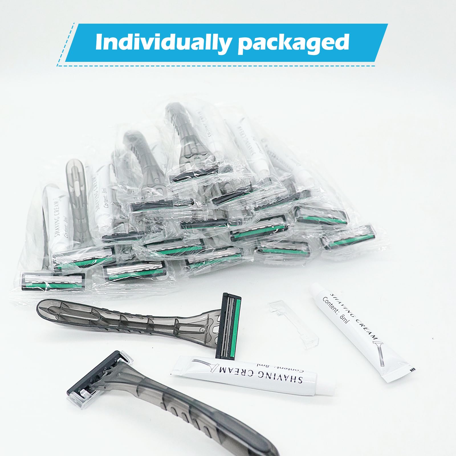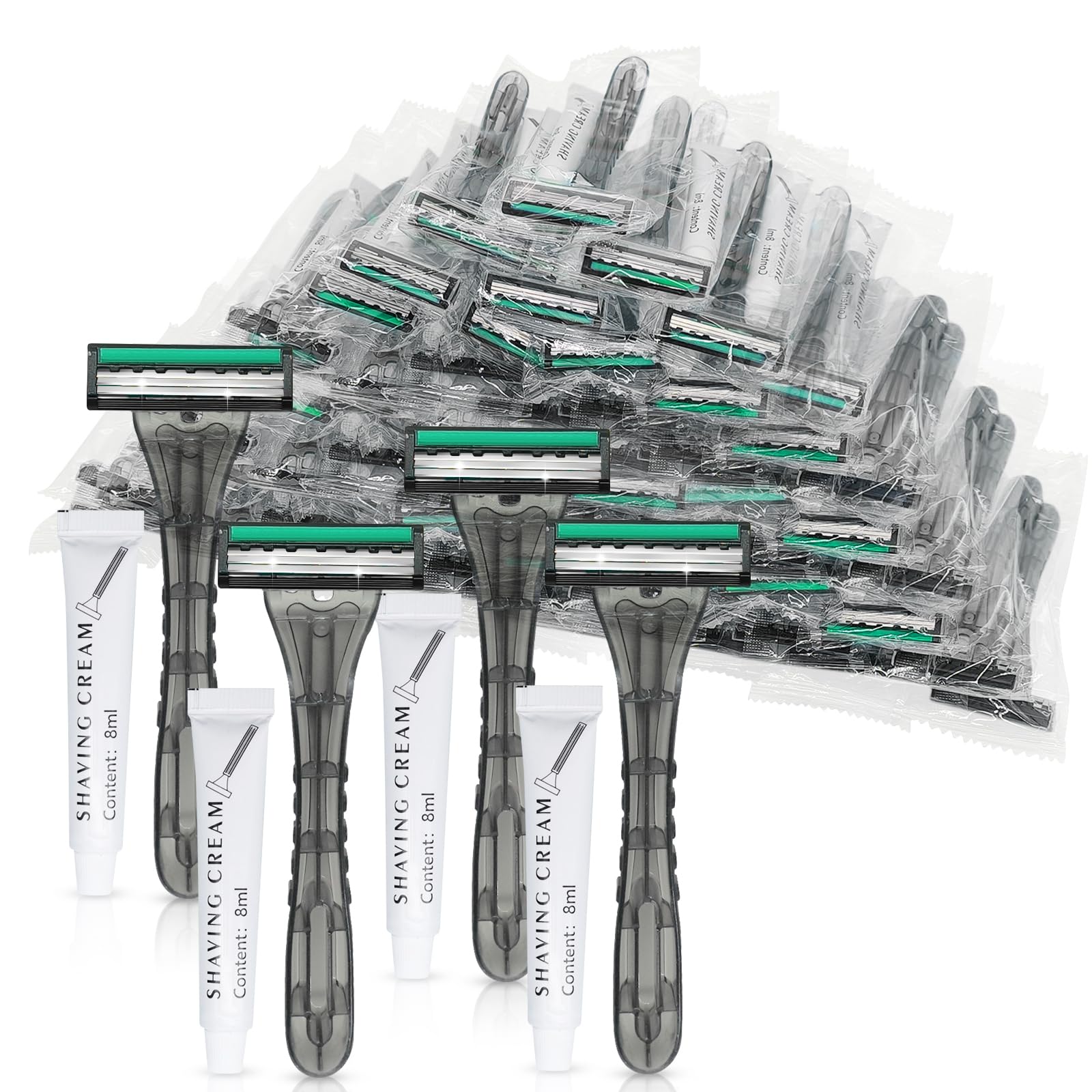 (200 Pcs) Kheoxusa 3 Blade Disposable Razor,Three Blade Disposable Razors,Triple Blade Disposable Razors,Disposable Razors Individually Wrapped,Disposable Razors for Hotel, Airbnb,Homeless,Travel-Grey