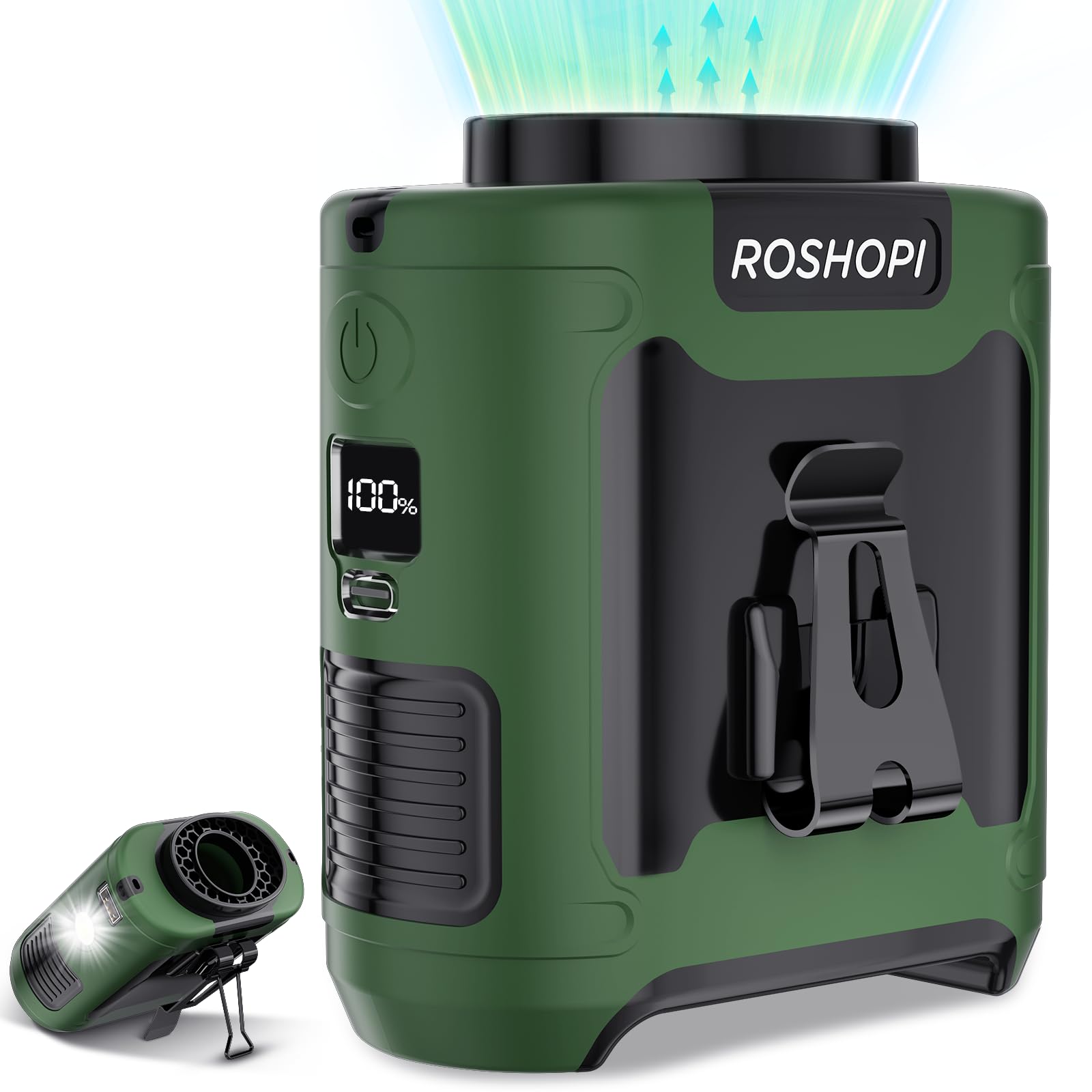 2025 AI Portable Fan Rechargeable -10000mAh, 40H Work Time with 5 Speeds 16000RPM Strong Airflow, Personal Waist Fan with Flashlight for Clip On Belt, Neck, Desk, Outdoor Indoor Jobsite Camping Travel
