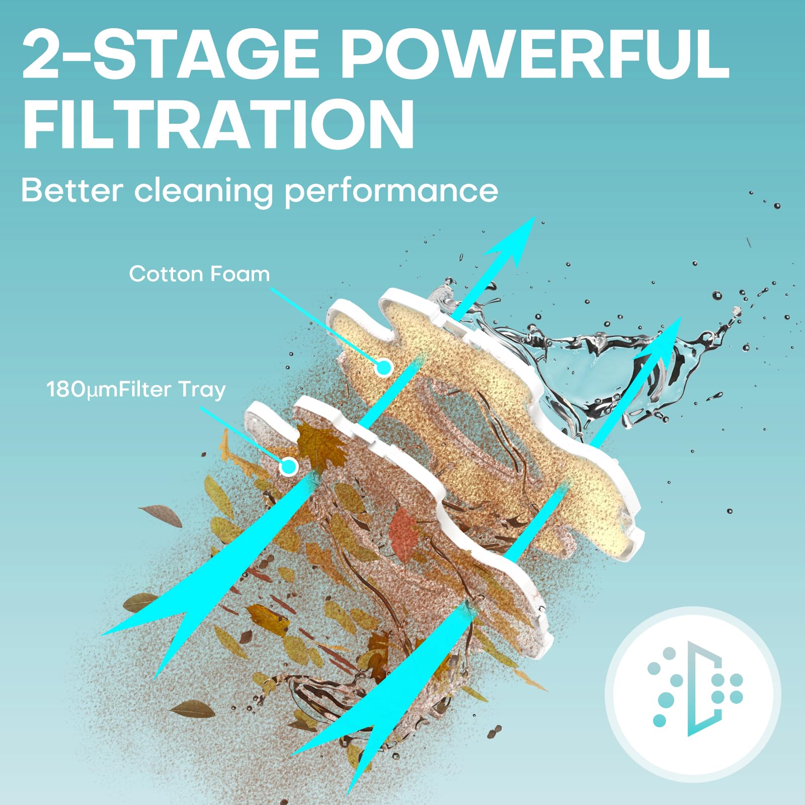 - 【Advanced Dual-Stage Filtration System】 This above-ground pool cleaner features a 180μm precision mesh filter paired with a multi-density foam layer, increasing filtration efficiency by 50% versus standard robots. Effortlessly traps everything from fine silt to leaves and sand, ensuring crystal-clear water with no debris left behind.