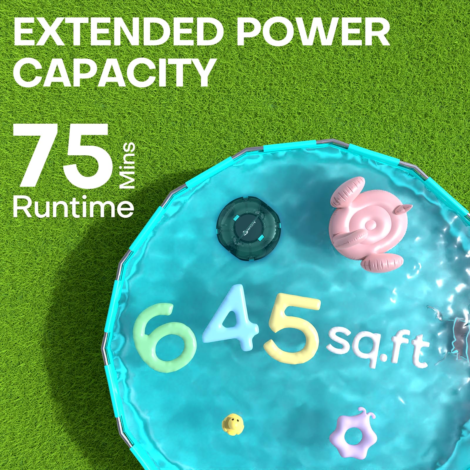 (2025 Upgrade) Cordless Robotic Pool Cleaner, Lasts 75 Min, Automatic Vacuum for Above-Ground Pools up to 645 Sq.ft,Portable, Self-Parking,Transparent Green