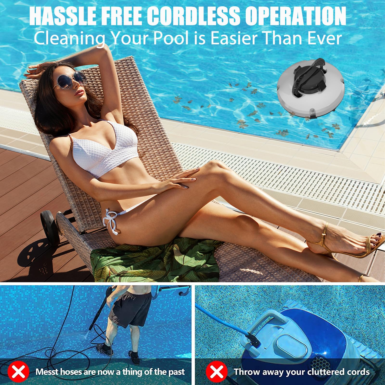 - Cordless Mobility & Intelligent Self - Parking: Say goodbye to the headaches of tangled cords. This automatic robotic pool cleaner comes with a cordless design, offering you complete freedom of movement. And when the battery starts to run low, it smartly self - parks. It’s always on standby to keep your pool immaculately clean, giving you a stress - free pool - maintenance routine.