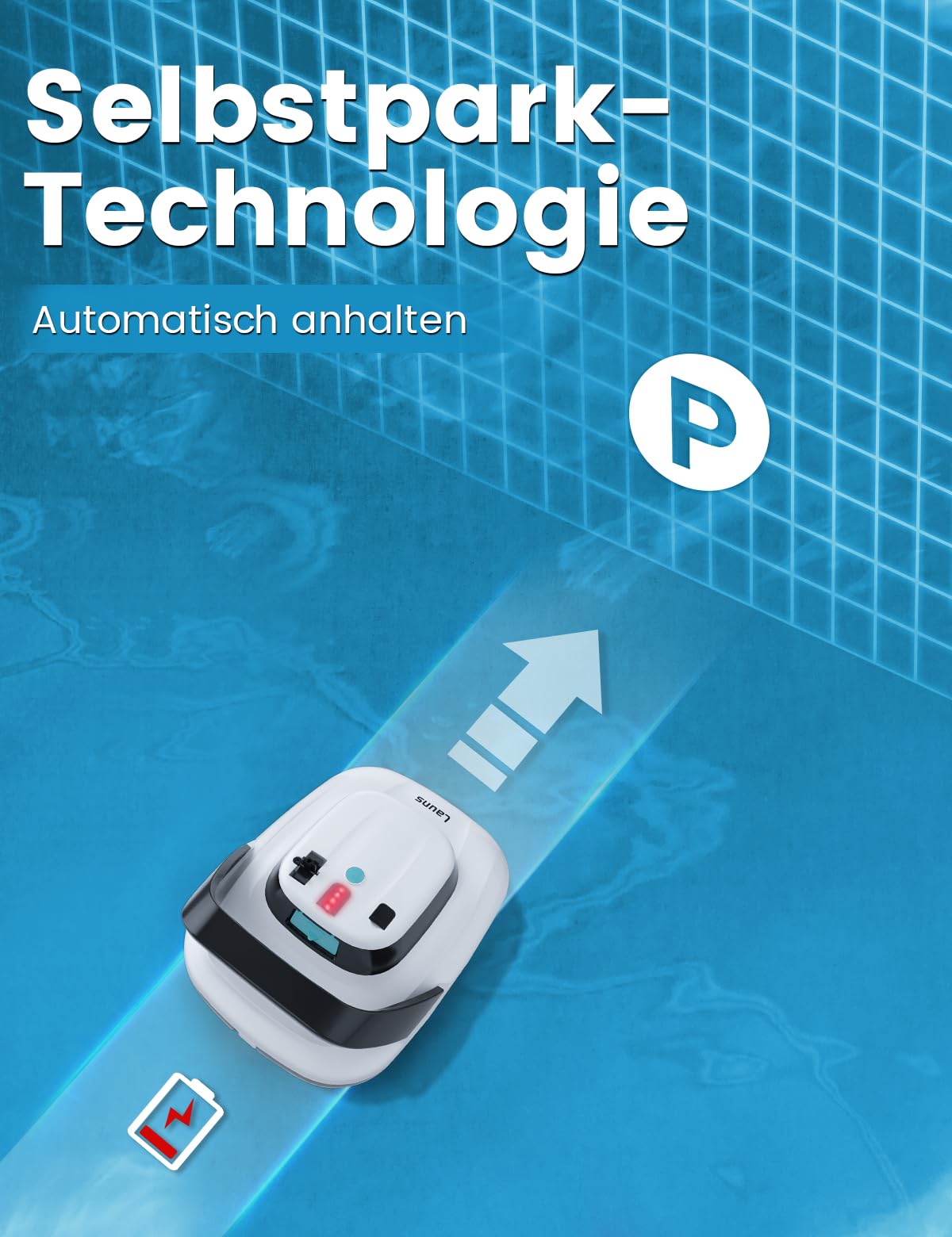 - 【2025 New Excellent Dual Motors Suction Ports】Launs S1 cordless robotic pool cleaner has dual powerful motors and suction ports. Easy to track and collect most types of dirt and debris, including dust, leaves, sand, and small stones for optimal cleaning. Turn on the power of the cleaner, immerse it in the swimming pool, and the cleaning process will start automatically. And robotic pool vacuum no longer have messy hoses and tangled cords.