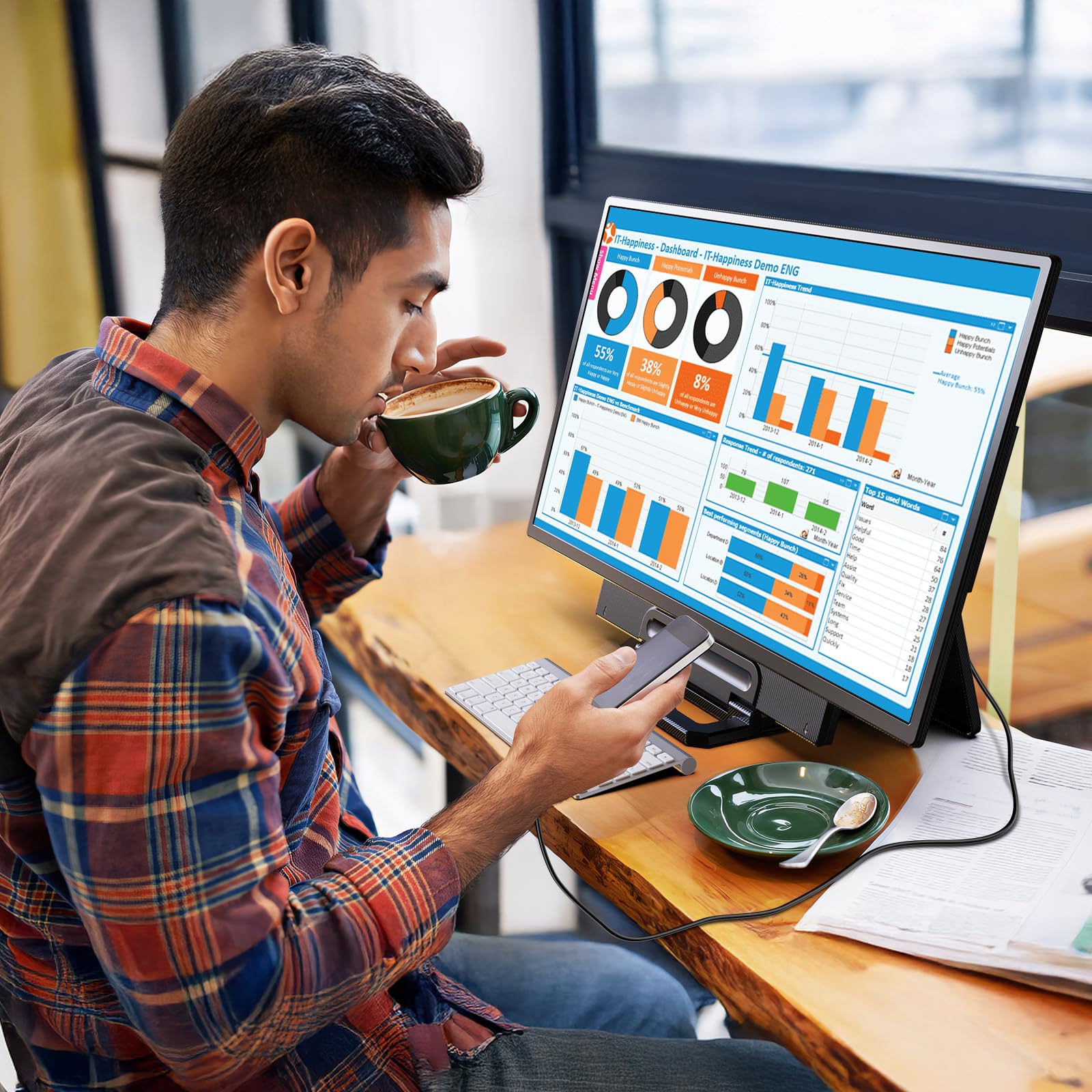 - 【Ygretyrjh 24' FHD Large Portable Monitor】The 24' laptop monitor extender offers expansive viewing, delivering vibrant colors and wide viewing angles. Combining cinematic clarity with lightweight convenience for seamless multitasking, creative projects, and immersive gaming wherever you work or play. Boosting efficiency by 200% for seamless multitasking anywhere - your ultimate mobile office companion.