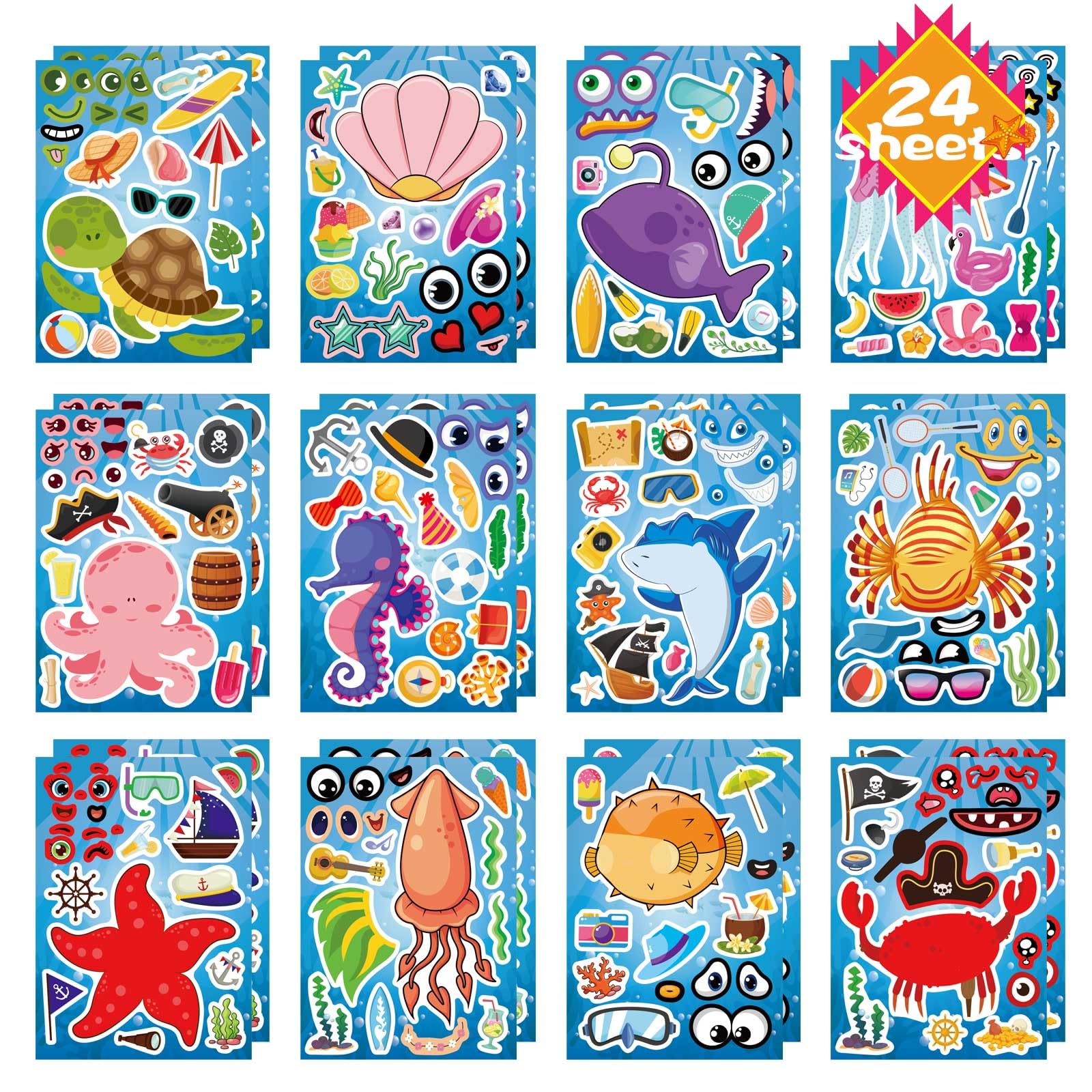 24 Sheets Make Your Own Sea Animals Stickers for Kids Toddlers, Make-a-face Stickers, Ocean Animals Stickers for Kids Party Favors Activities