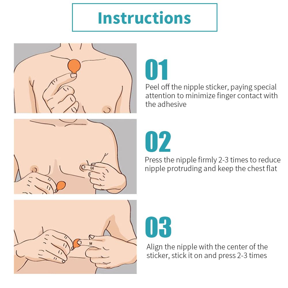 - Just enough to cover male nipples, not too large to affect the breathability of the skin;