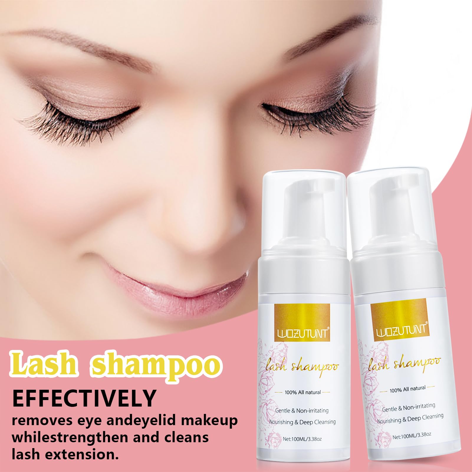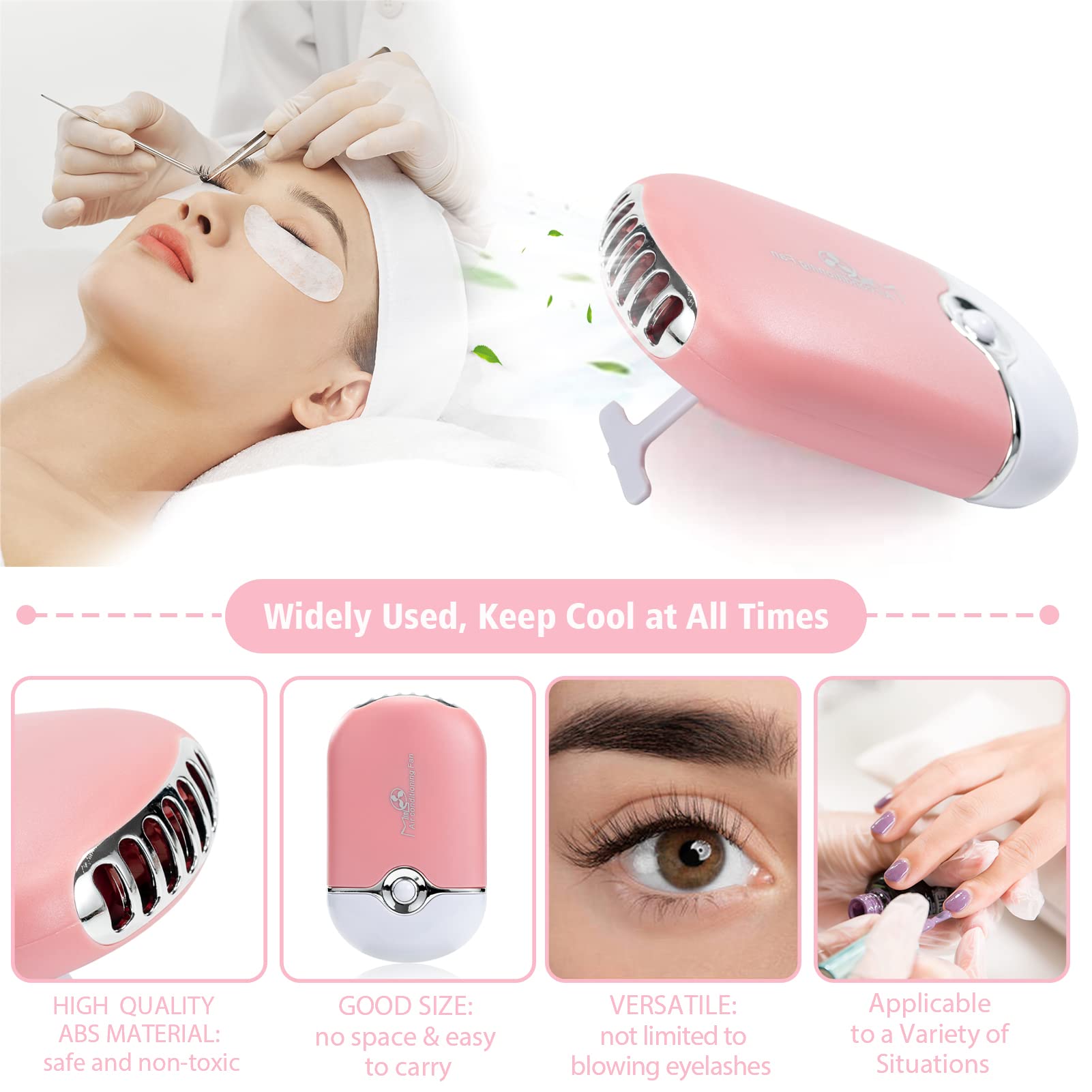 3.38OZ Eyelash Extension Cleanser Lash Mousse Lash Shampoo for Extensions, USB Mini Portable Fan Rechargeable Electric Handheld Air Conditioning Lash Shampoo Brush Plastic Wash Bottle (lash fan-pink)