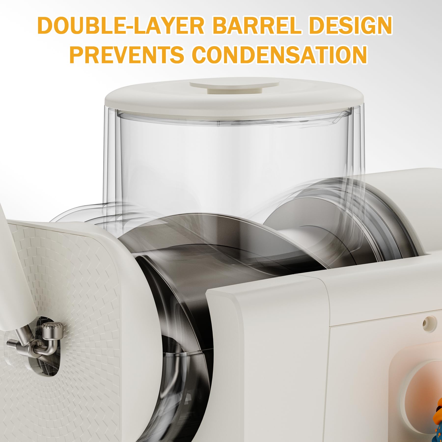 - One-Touch Self-Cleaning & Dishwasher Safe Press once for auto-cleaning cycle (5-min default). All parts—double-layer mixing barrel, blades, drip tray—are dishwasher-safe (exclude heating/drying). Includes multi-function brush for stubborn residue.