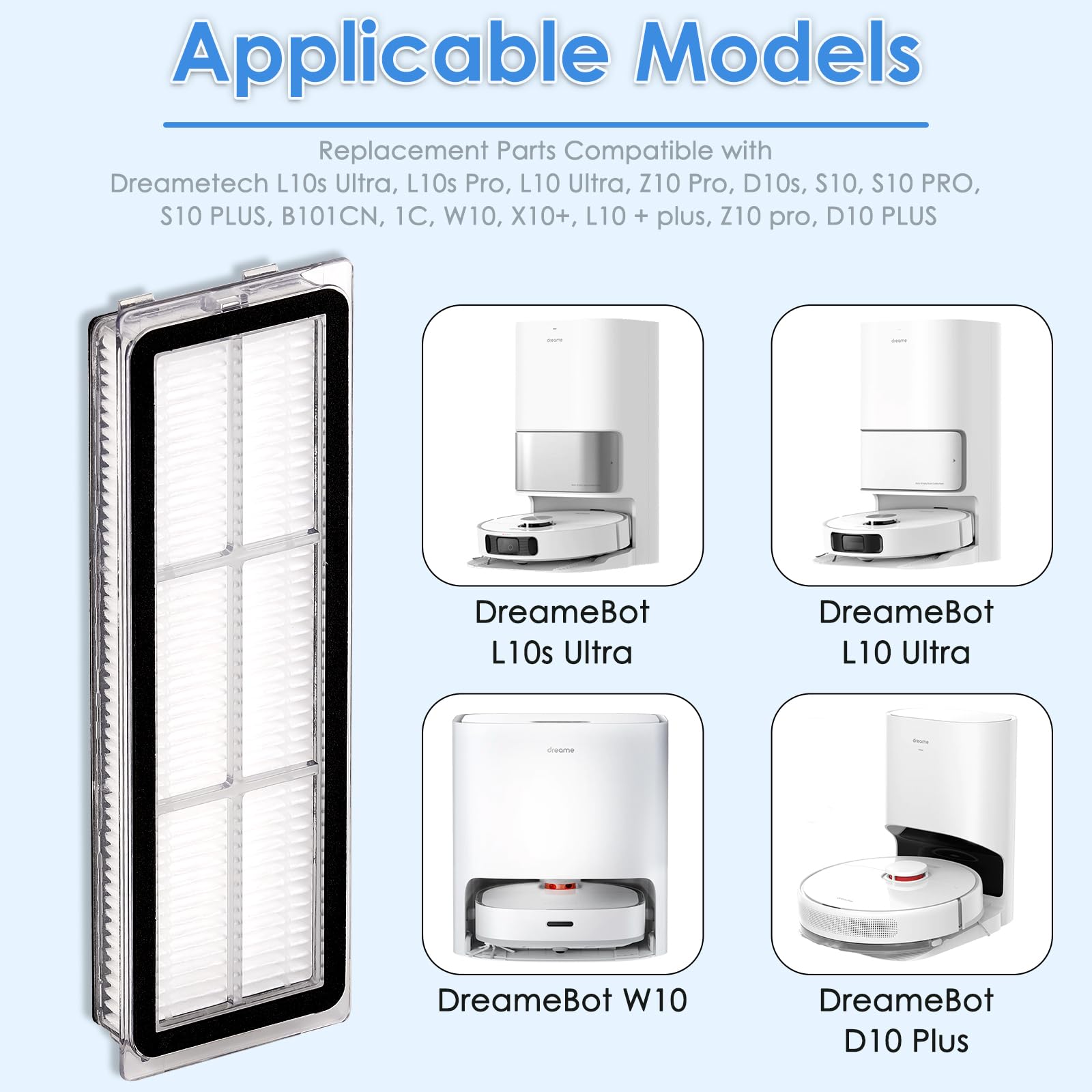 - 【Super Compatible】 This filter is compatible with Dreametech L10s Ultra, L10s Pro, L10 Ultra, Z10 Pro, S10, S10 PRO, S10 PLUS, B101CN, 1C, W10, X10+, L10+ plus, Z10 pro, D10 PLUS, Robot Vacuum Cleaner Accessories. These replacement filters are just as good as the original filters, fit perfectly and are easy to install. Please be noted that: This is not an OEM product. Any use of the brand name or model name is intended solely to demonstrate compatibility of this product.