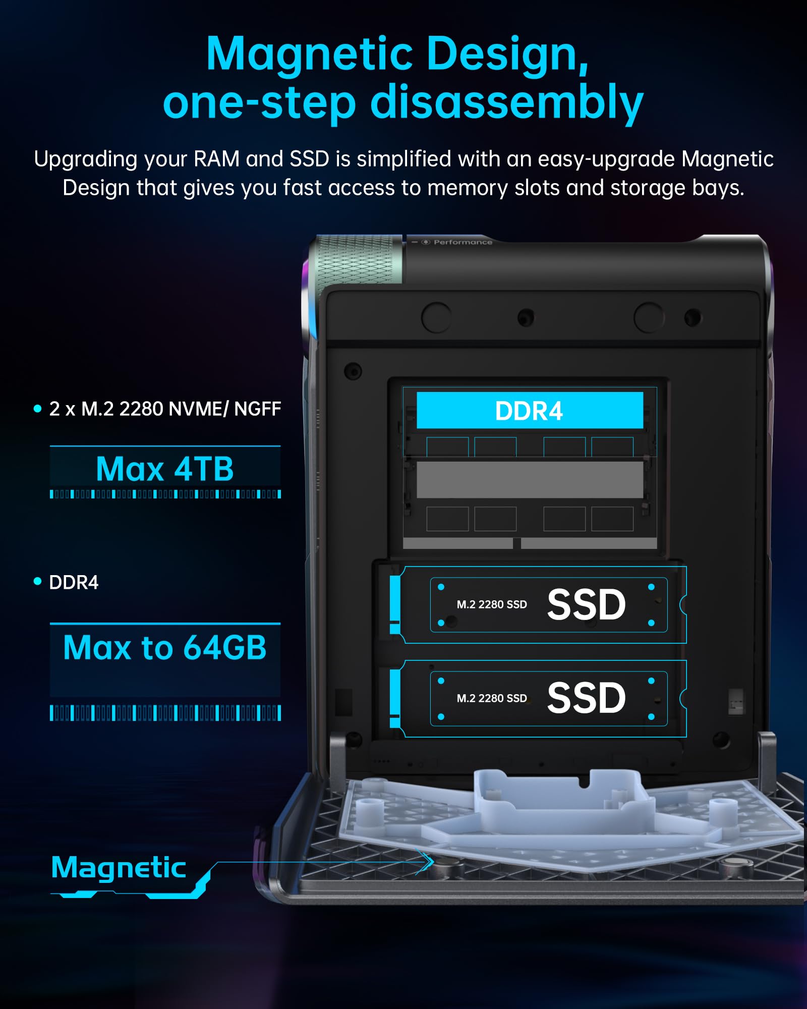 - [RGB Lighting effect & High efficency cooling system] Gaming Small PC provides three different lighting modes for you to choose, you can choose your favorite lighting effect according to your mood. This Mini PC has a cooling module made from a blend of high tech copper alloy for efficient heat dissipation. This is backed up with a super high speed cooling fan. Allied together, you will keep your cool in the most intense gaming sessions!