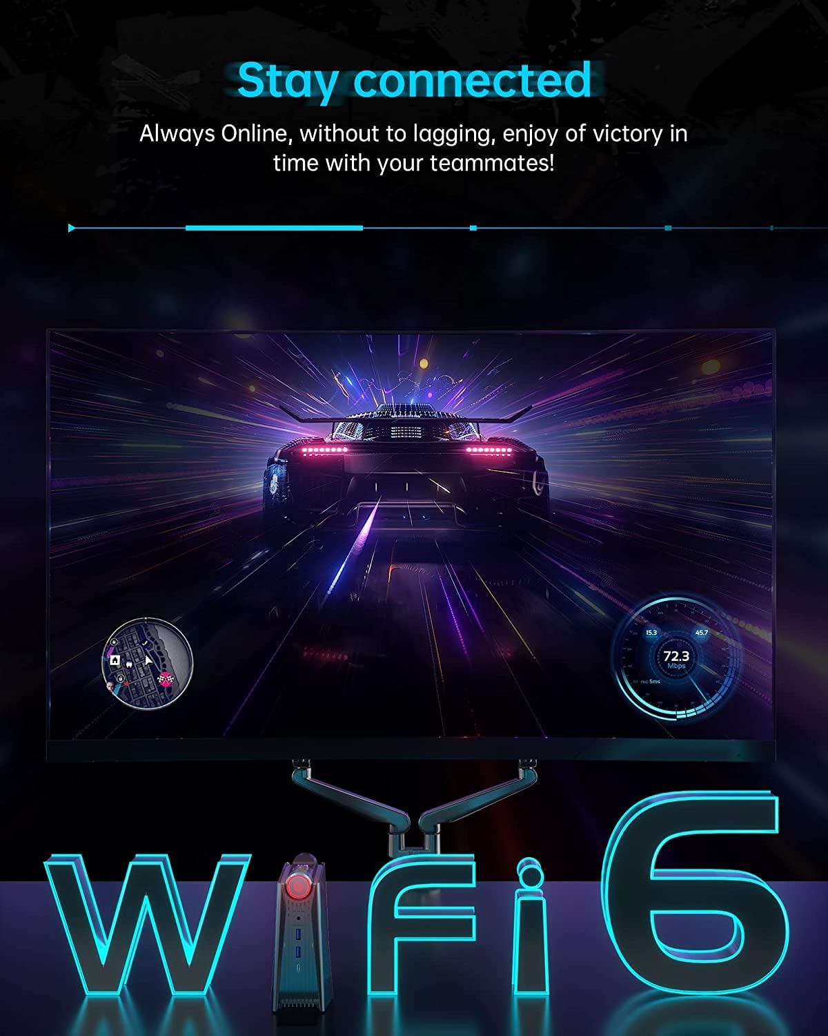 - [S3A, Fight for Speed] Stay connected and say goodbye to delays with our Mini Gaming PC. Featuring a 1G RJ45 port, WiFi 6 standard radio, and Bluetooth 5.2 technology, you'll enjoy peak interface bandwidth, efficiency, and reliability, with lower latency and less lag