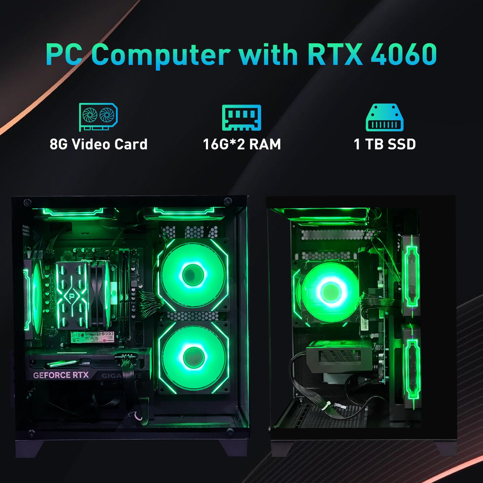 ALCPOK Gaming PC Desktop, Intel Core i5 14400F, RTX 4060, 32GB RAM, 1TB SSD, ARGB Fan, Tower Computer for Gaming and Office