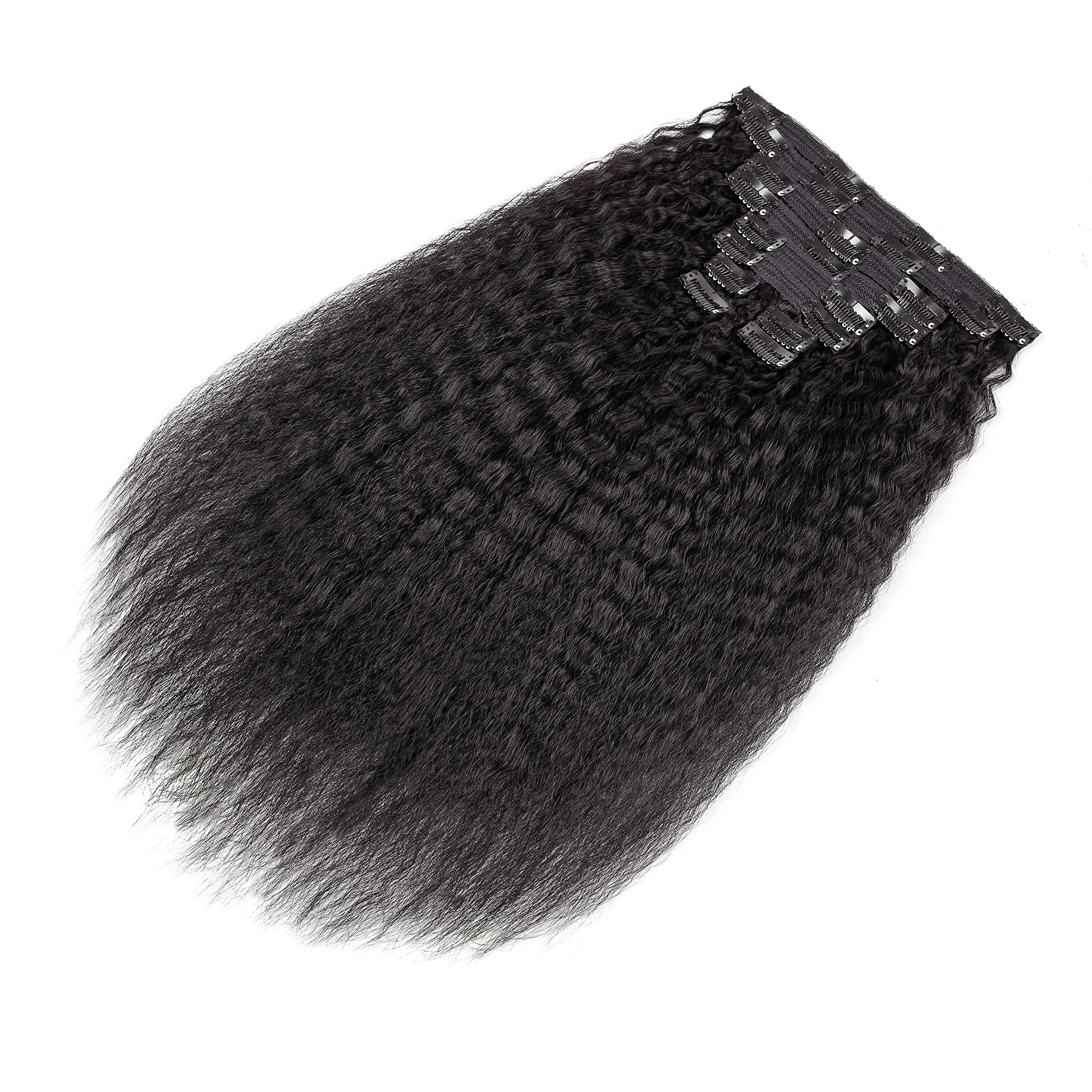 - Hair Texture: Kinky Straight Clip In Human Hair, The Color Is Natural Black, Well Crafted Double Wefts. 120G/Set. 10 Pcs/Set With 22 Clips Attached