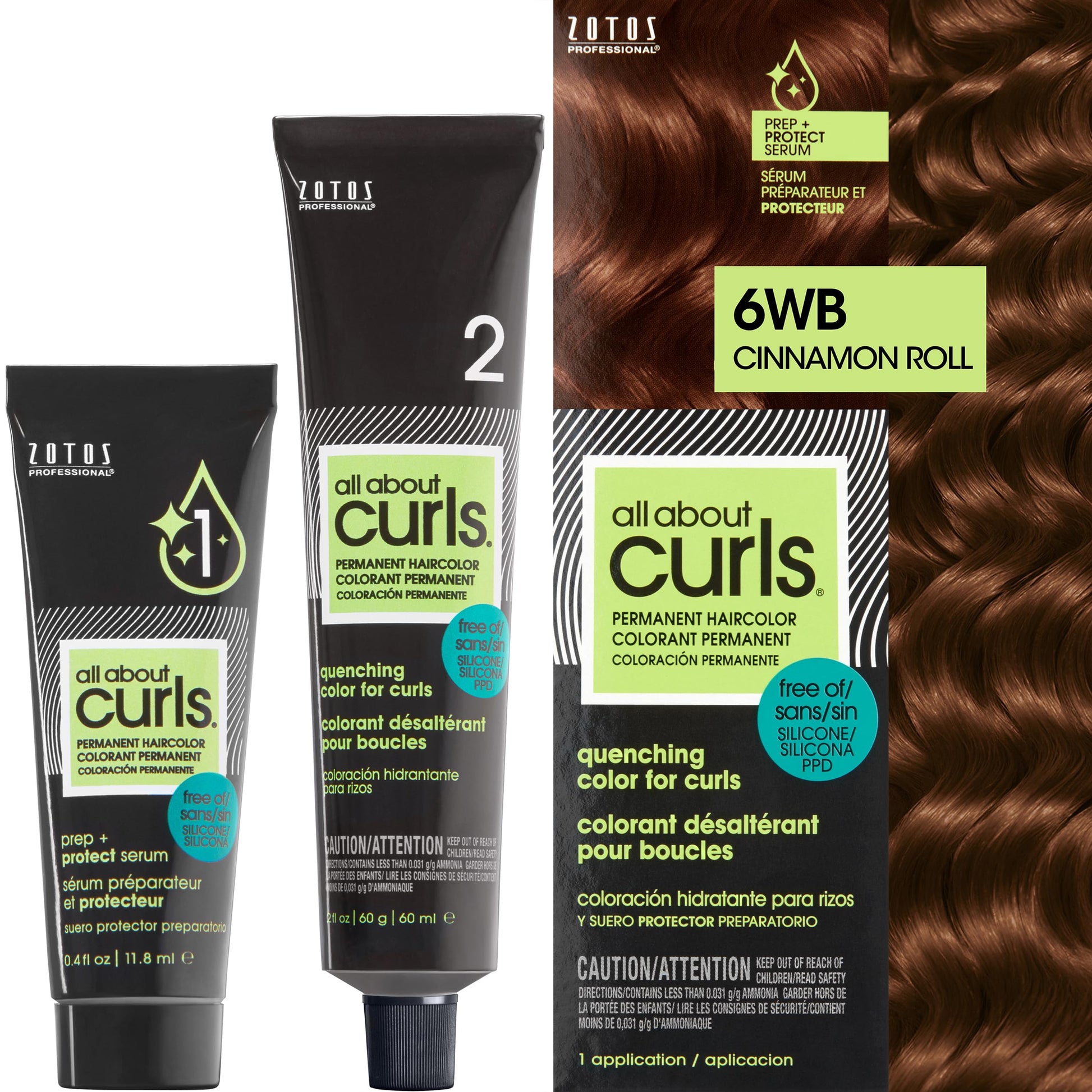 All About Curls 6WB Cinnamon Roll Permanent Hair Color (Prep + Protect Serum & Hair Dye for Curly Hair) - 100% Grey Coverage, Nourished & Radiant Curls