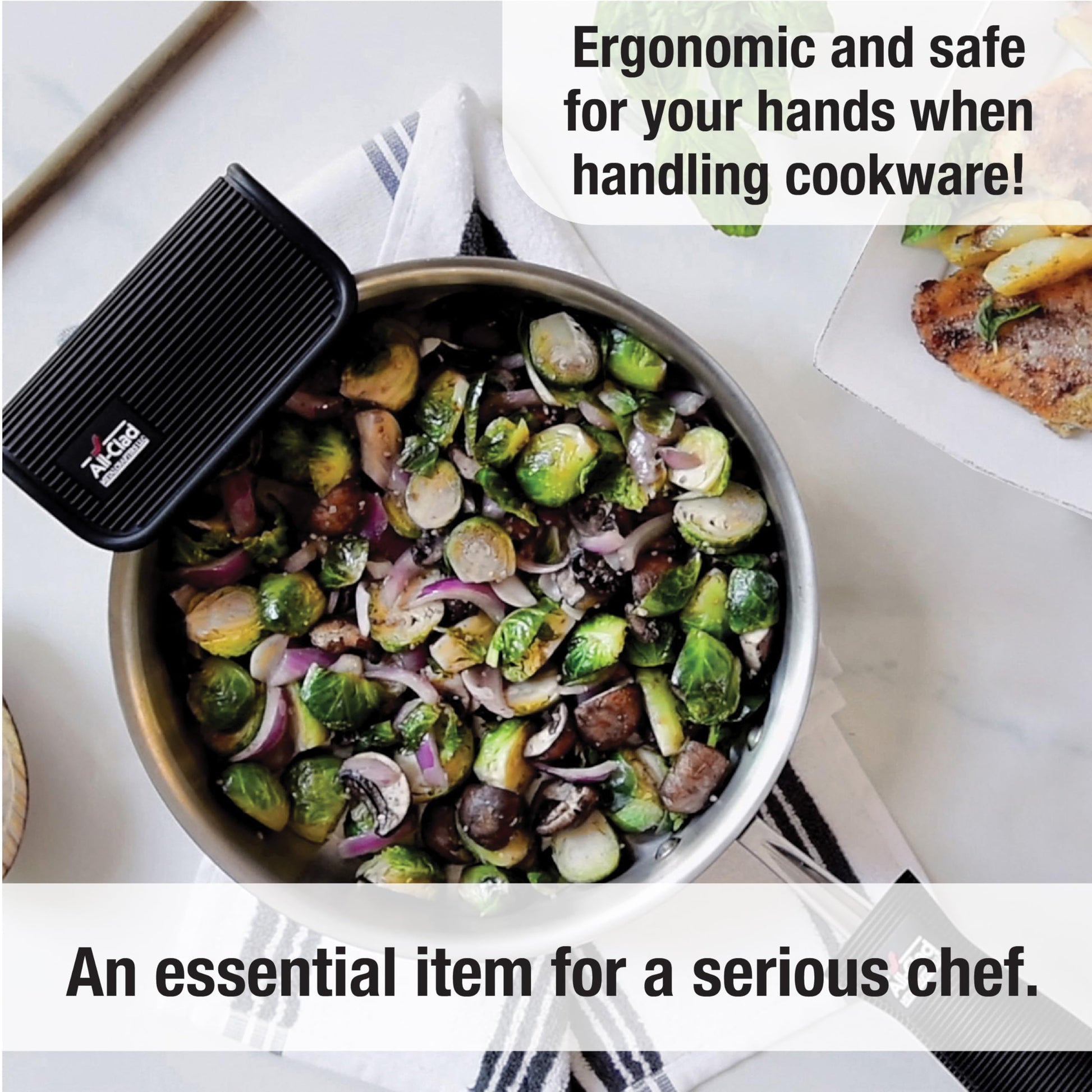 - COMFORTABLE ERGONOMIC DESIGN: Designed with comfort in mind, these pan grips feature an ergonomic shape and textured surface for a secure and comfortable non-slip grip, reducing hand fatigue and providing added control while cooking.