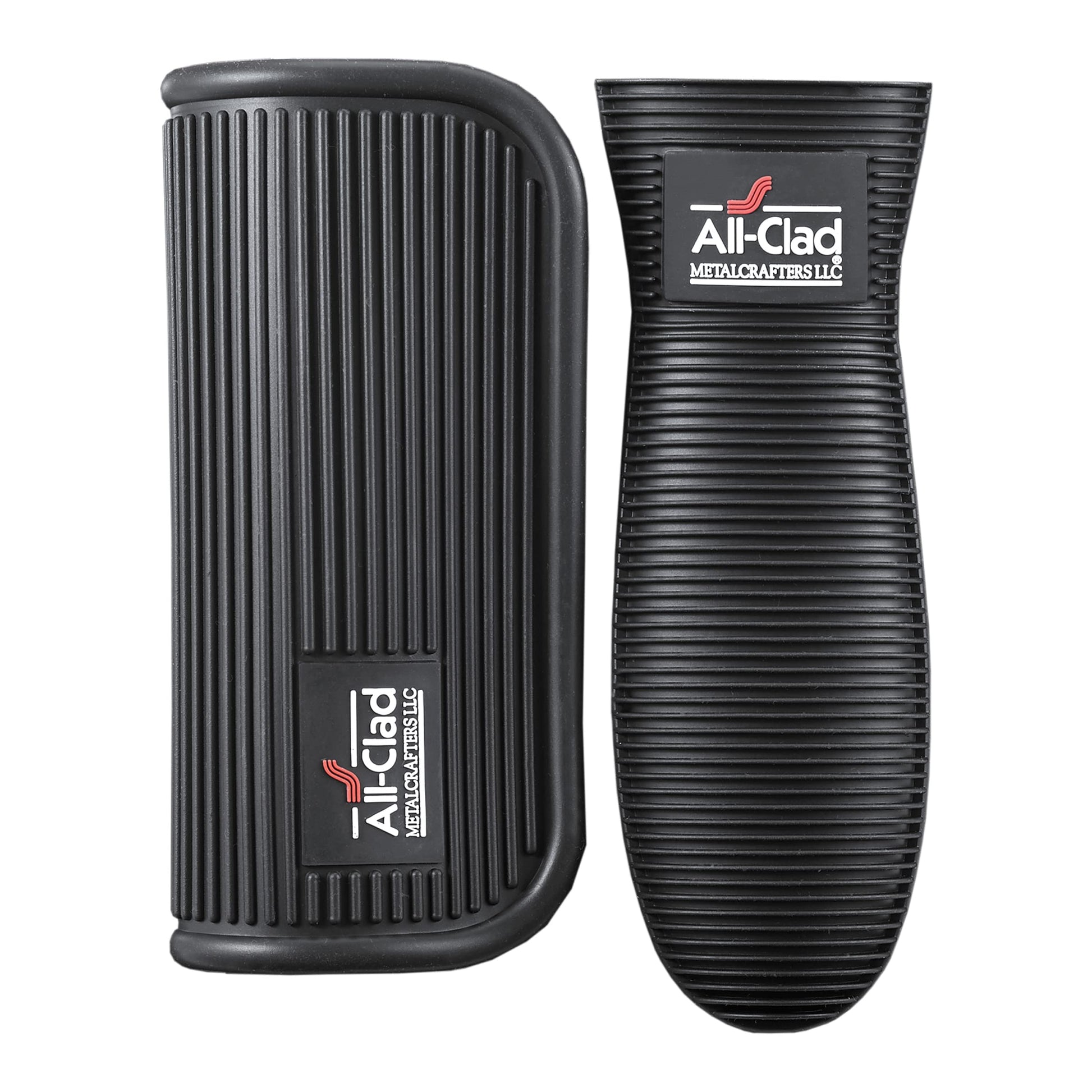 All-Clad Silicone Grip Set: 100% Silicone Flexible & Heat Resistant Ribbed Grip Set - Perfect for Cast Iron, Steel, or Glass, (2-Piece), Black/Grey