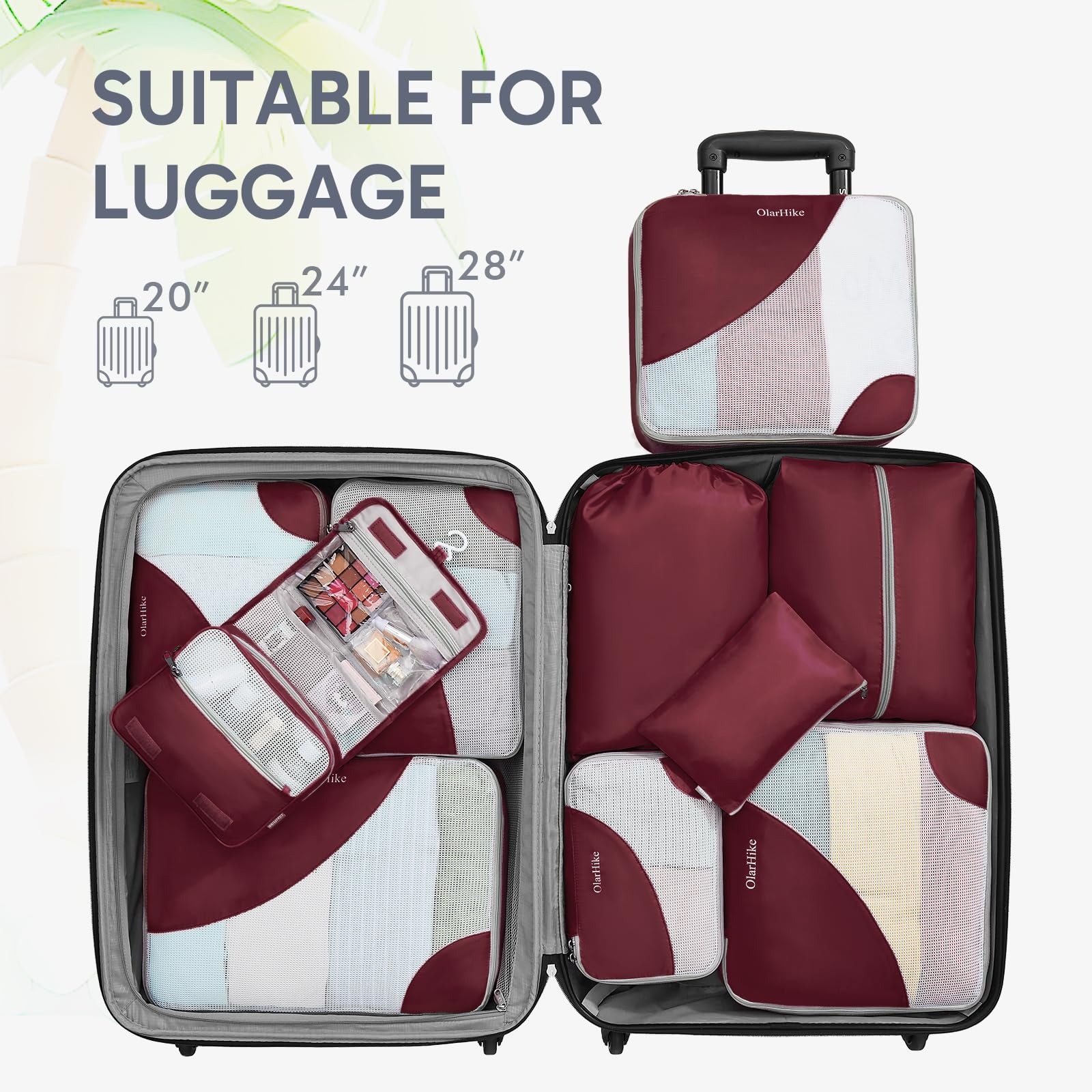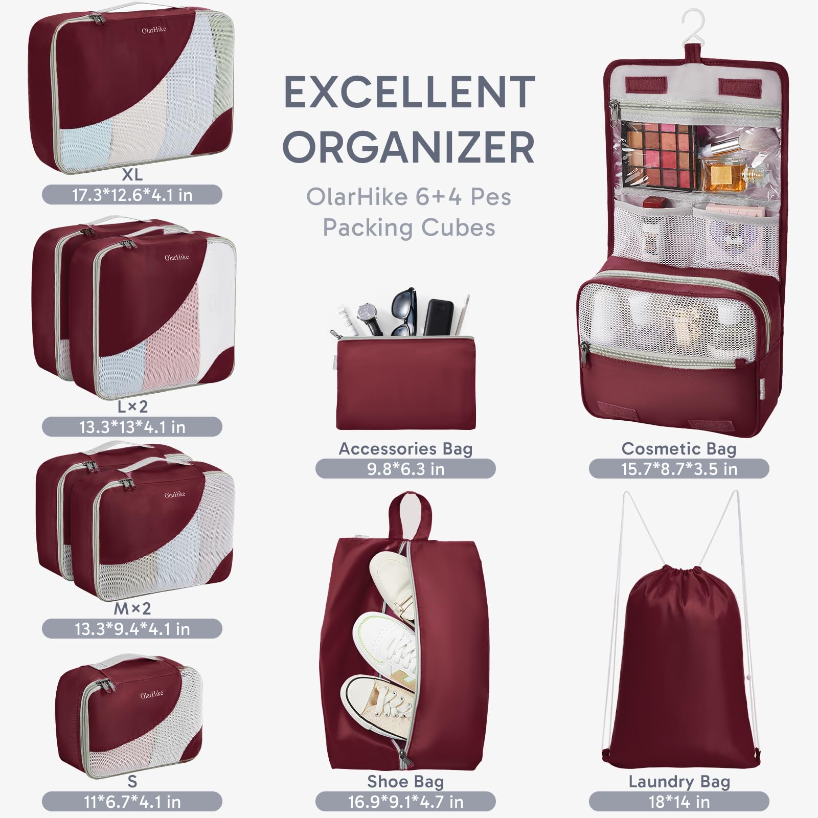 ALL INCLUDED 10 Set Sturdy Packing Cubes for Suitcases,OlarHike Travel Essentials,UPGRADED Anti-Tear Stitching, NEW Improved Luggage Packing Organizers for Travel Accessories (Burgundy)