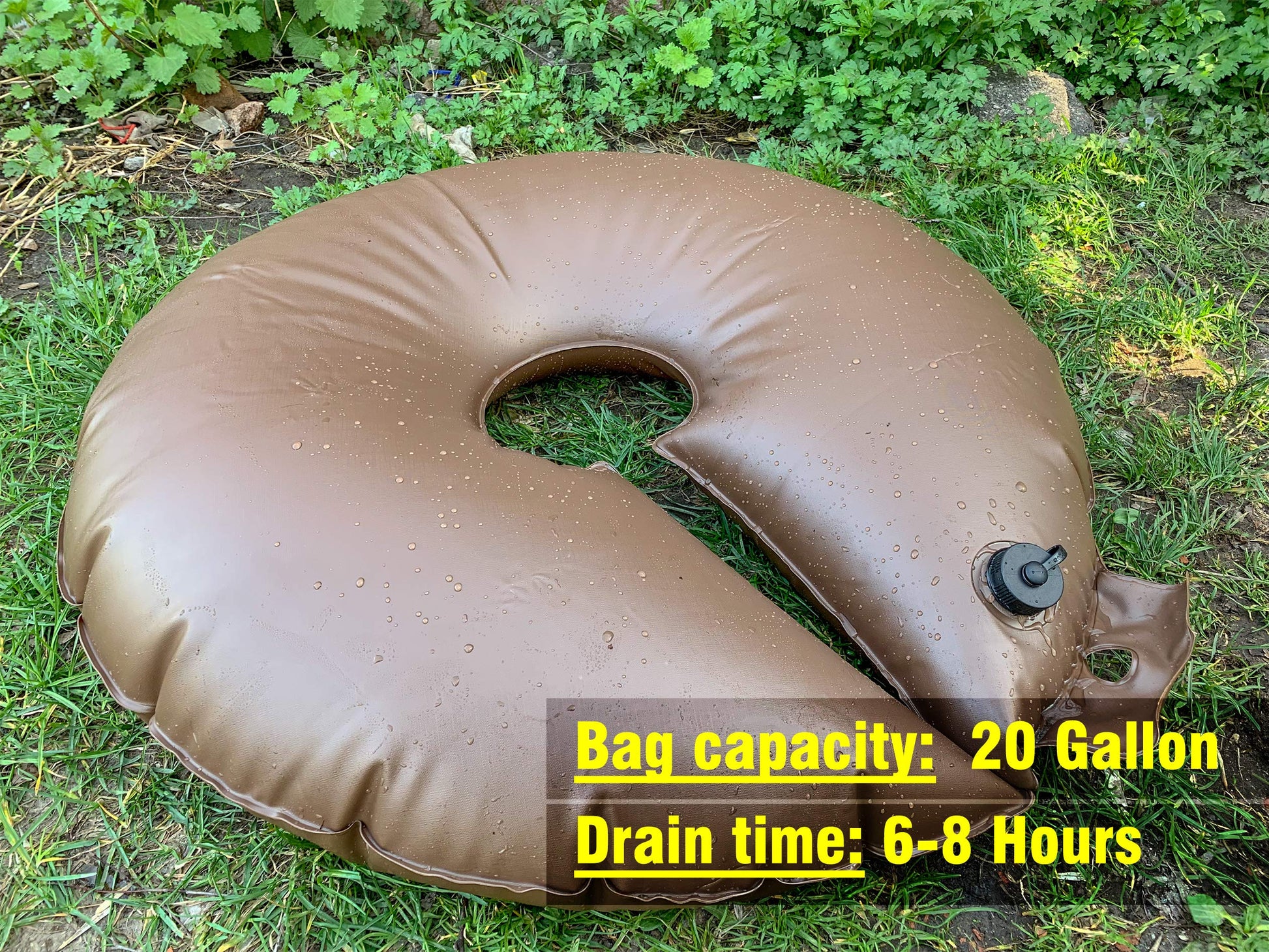 - ✔️ Heavier Body Fabric & Larger Filling Opening with Inner lock Device. HIGHLIGHT Tree Watering Donut bag Say No to easy split at the seam, we upgraded the tear resistant brown PVC fabric and widen the heat-seal edges. Say No to hard to filling watering from the small fill hole, 1.5inch larger filling hole suitable for almost water hoses.