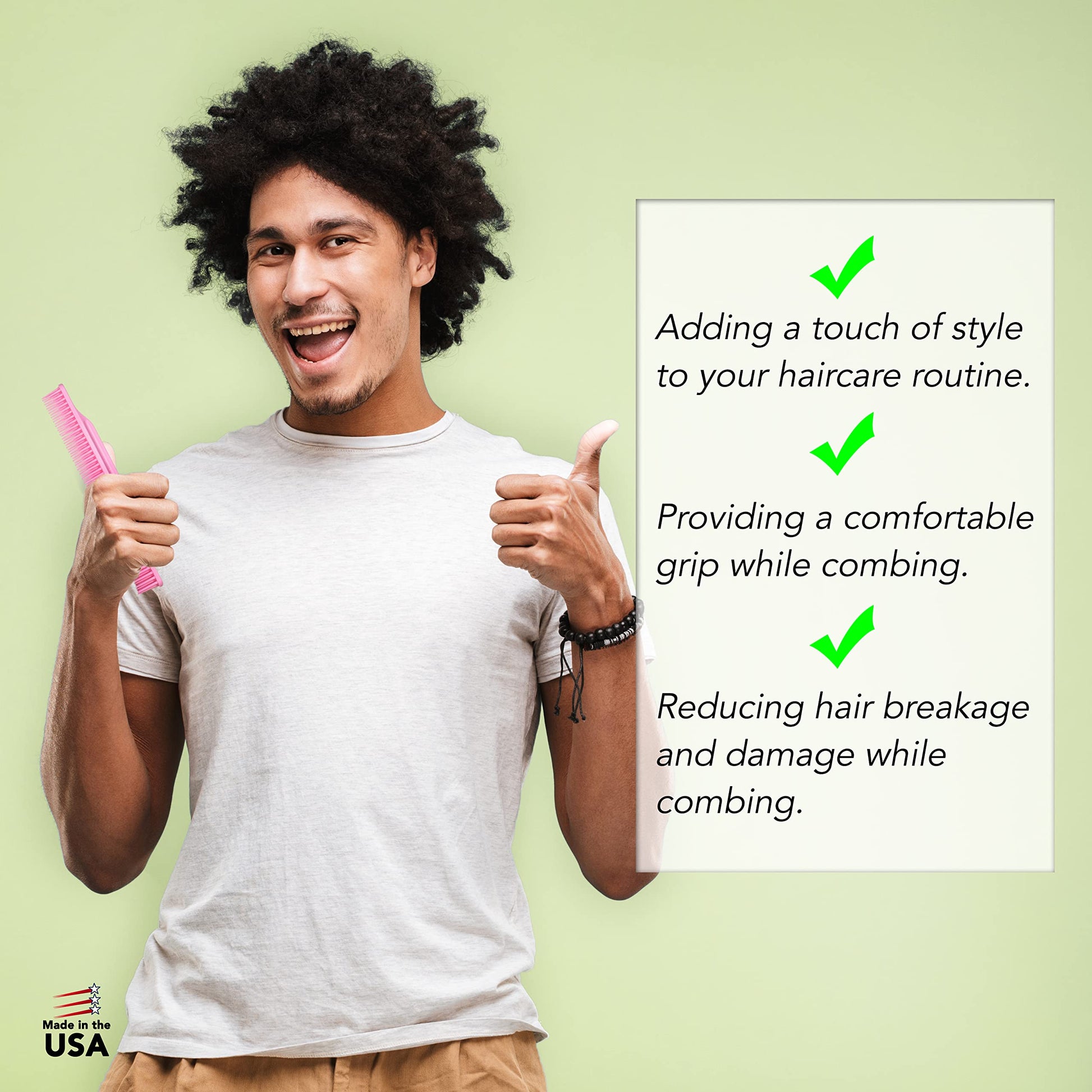 - MADE IN THE USA: our curl comb is perfect for hair stylists who want to offer their clients the best styling tools available. Detangling brush for black natural hair It is also an excellent tool as hair brush for slicking hair back for people who prefer to take care of their hair at home.