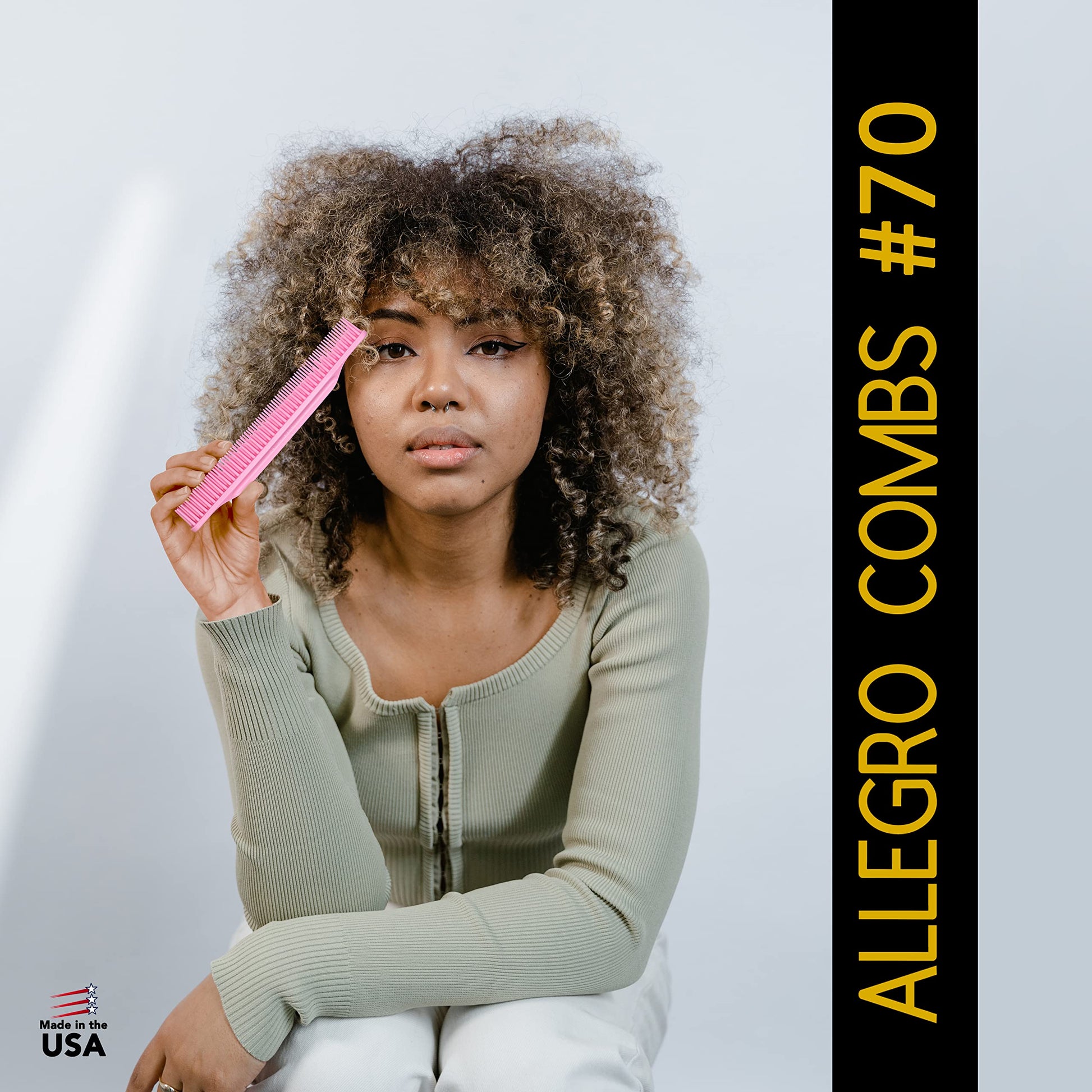 Allegro Combs 3-Row Detangling Comb #70, Light pink - Perfect for Women Curly Hair Stylists, Curl Defining, Made in USA, 1 Piece