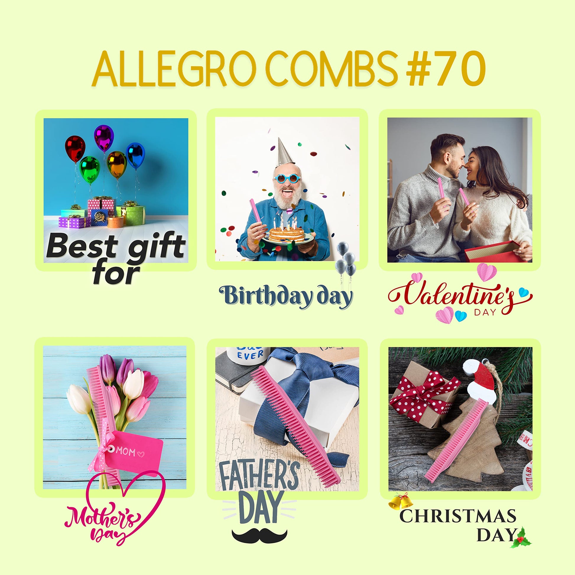 - ALLEGRO COMBS# 70 IS NOT JUST A DETANGLER: but also a great hair comb for parting hair, slicking hair back, and teasing hair to create volume. It is a versatile styling comb that can be used for all hair types, including curly, straight, and wavy hair.