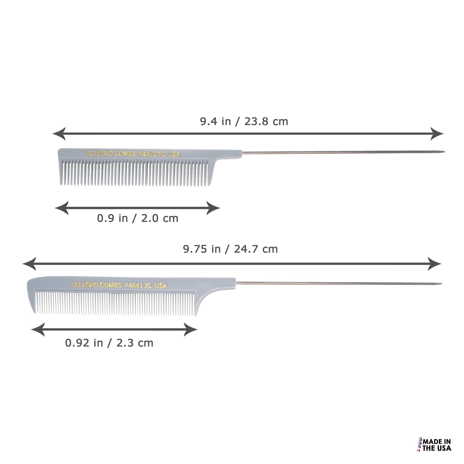 Allegro Combs XL Pintail Rat Tail Combs Parting Combs Metal Tail Foiling Combs Pin Combs Stitch Braids Combs2 Pc. (Gray)