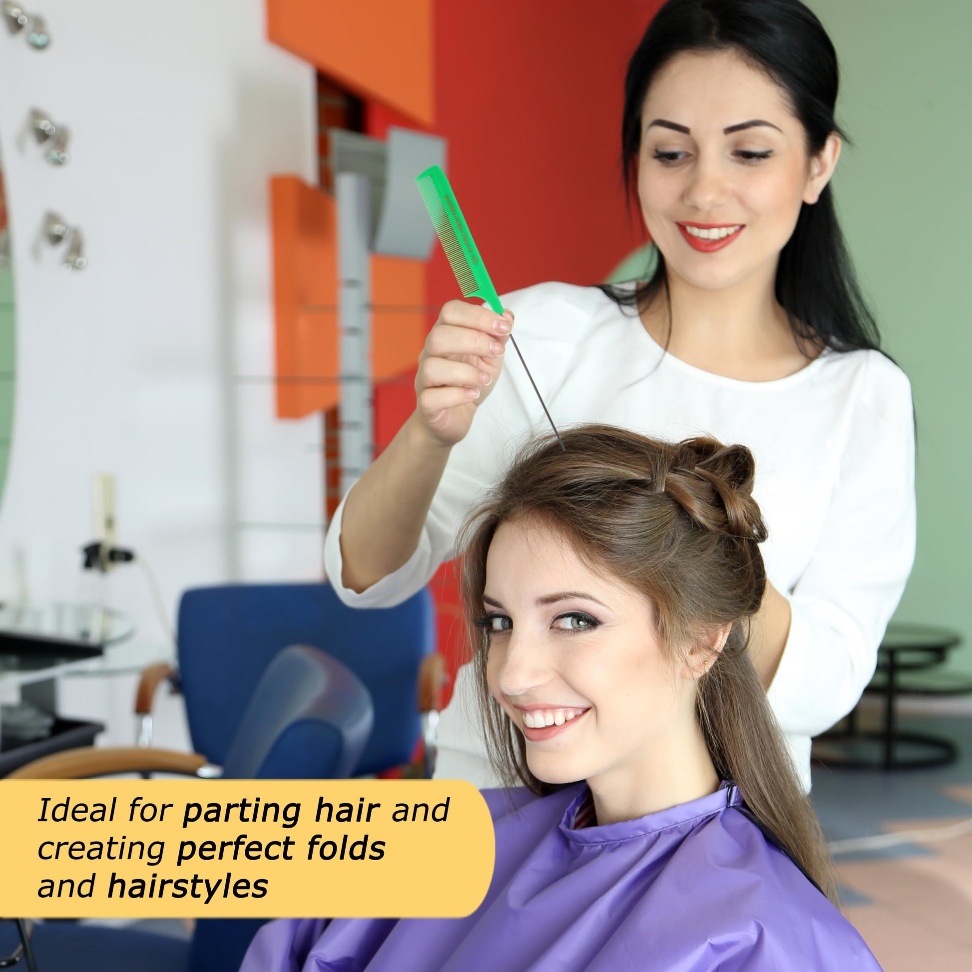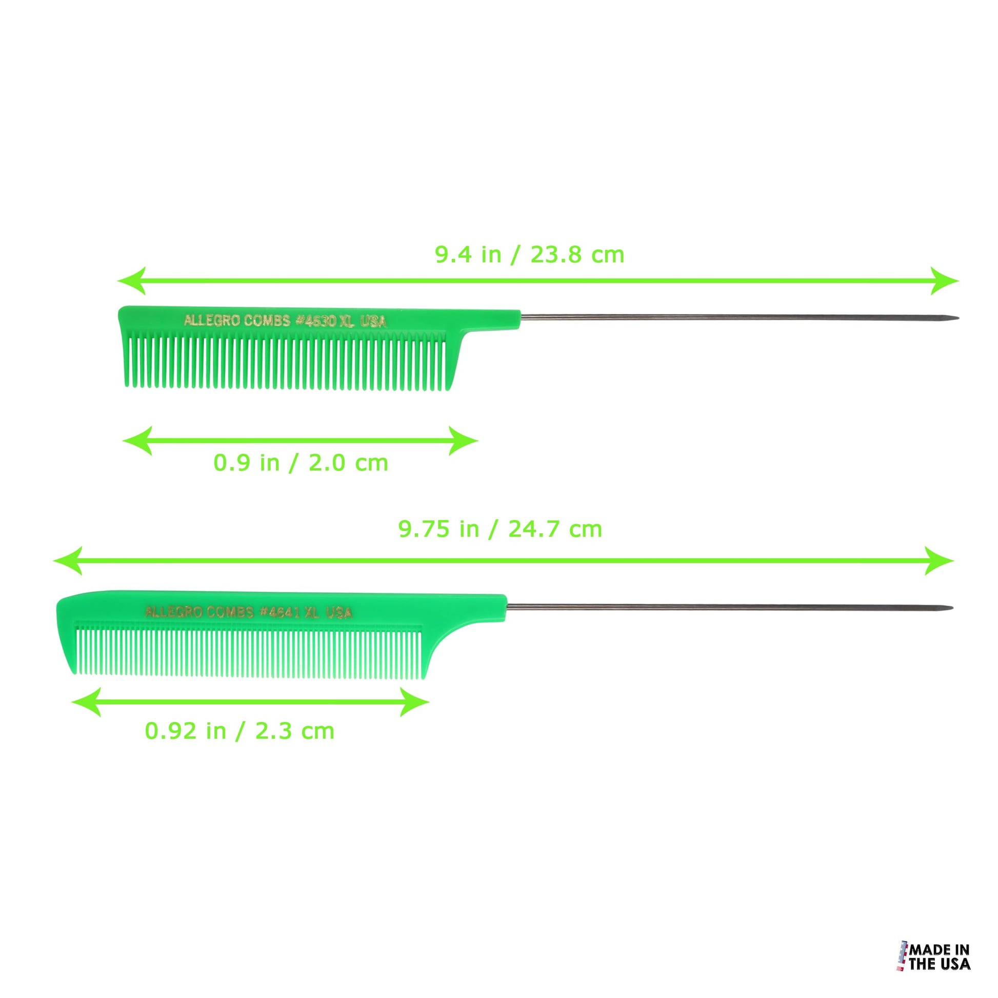 Allegro Combs XL Pintail Rat Tail Combs Parting Combs Metal Tail Foiling Combs Pin Combs Stitch Braids Combs2 Pc. (Neon Green)