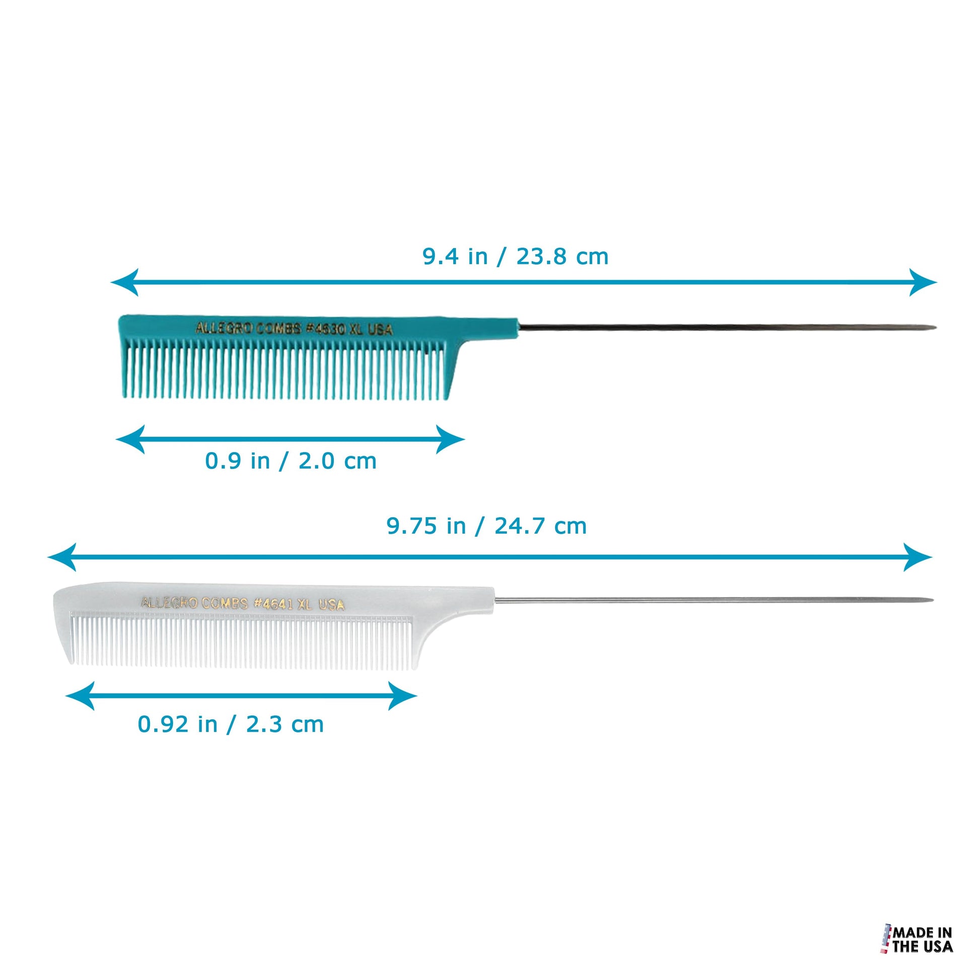 Allegro XL Pintail Rat Tail & Parting Combs - Metal Tail Foiling & Pin Combs (2 Pc. AQUA & WHITE)