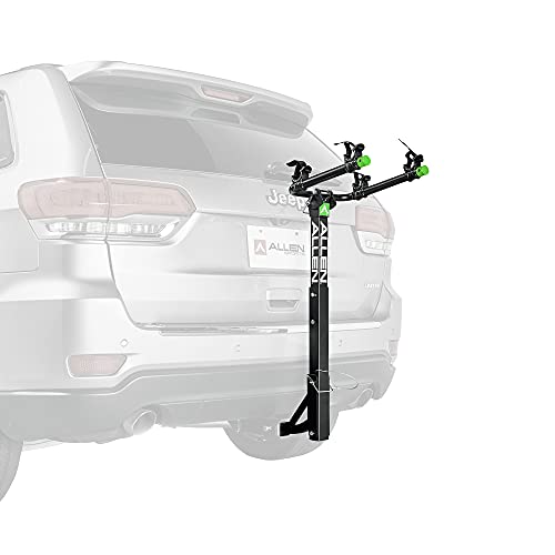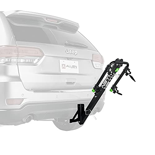 Details: Carry up to two bicycles on road trips or camping guards with the allen two bike hitch mounted carrier. The hitch insert which fits 1 1/4 and 2 inch receiver hitches is easy to operate and super secure for your bikes. Just attach it to your hitch, then use the tie down cradle system to individually secure and protect your bikes. The carry arms accommodates a wide range of frame sizes and designs, so you can carry your kid size mountain bike or Adult road bike with equal confidence. Some bicycles without a standard top tube may require an adaptor bar for installation. The rack tilts back for easy lift gate access. Also equipped with a locking quick install hitch that keeps the rack from moving inside the hitch, the two bike carrier is colored with a Black powder coated finish. Never use on trailers.