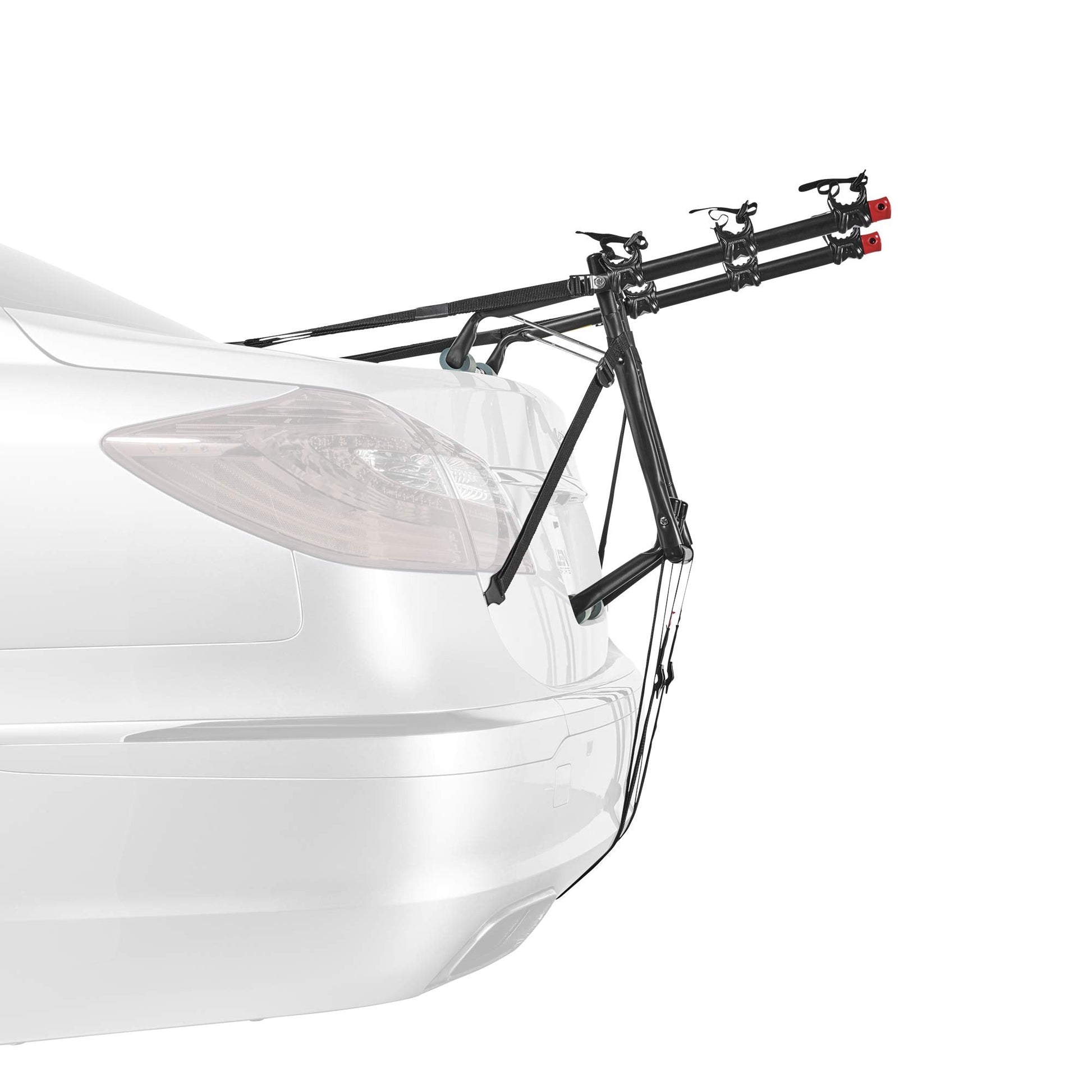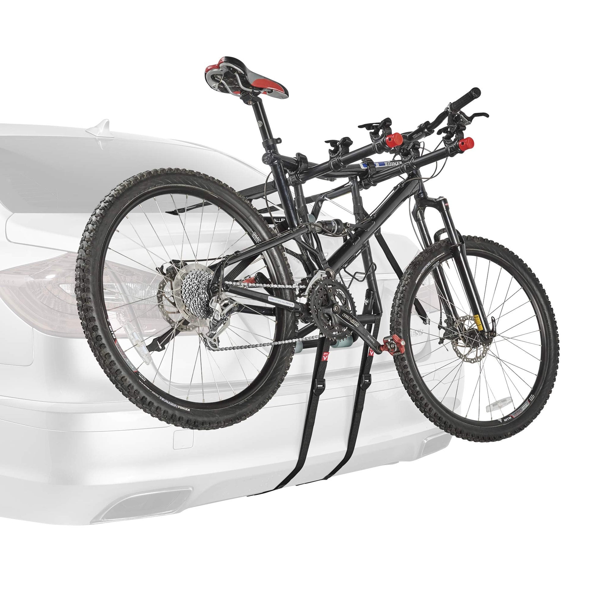 - Simple, sturdy design fits most sedans, hatchbacks, minivans, and SUV's. Consult manufacturer's site for specific vehicle fit..Simple, sturdy design fits most sedans, hatchbacks, minivans, and SUV's. Consult manufacturer's site for specific vehicle fit.Single configuration design eliminates setup hassles and headaches during installationIndividual tie-downs secure and protect bicycles. Folds fully flat for easy storagePadded lower frame protects vehicle, and left and right side straps for lateral stability.Fully assembled, installs in seconds.Folds fully flat for easy storage.