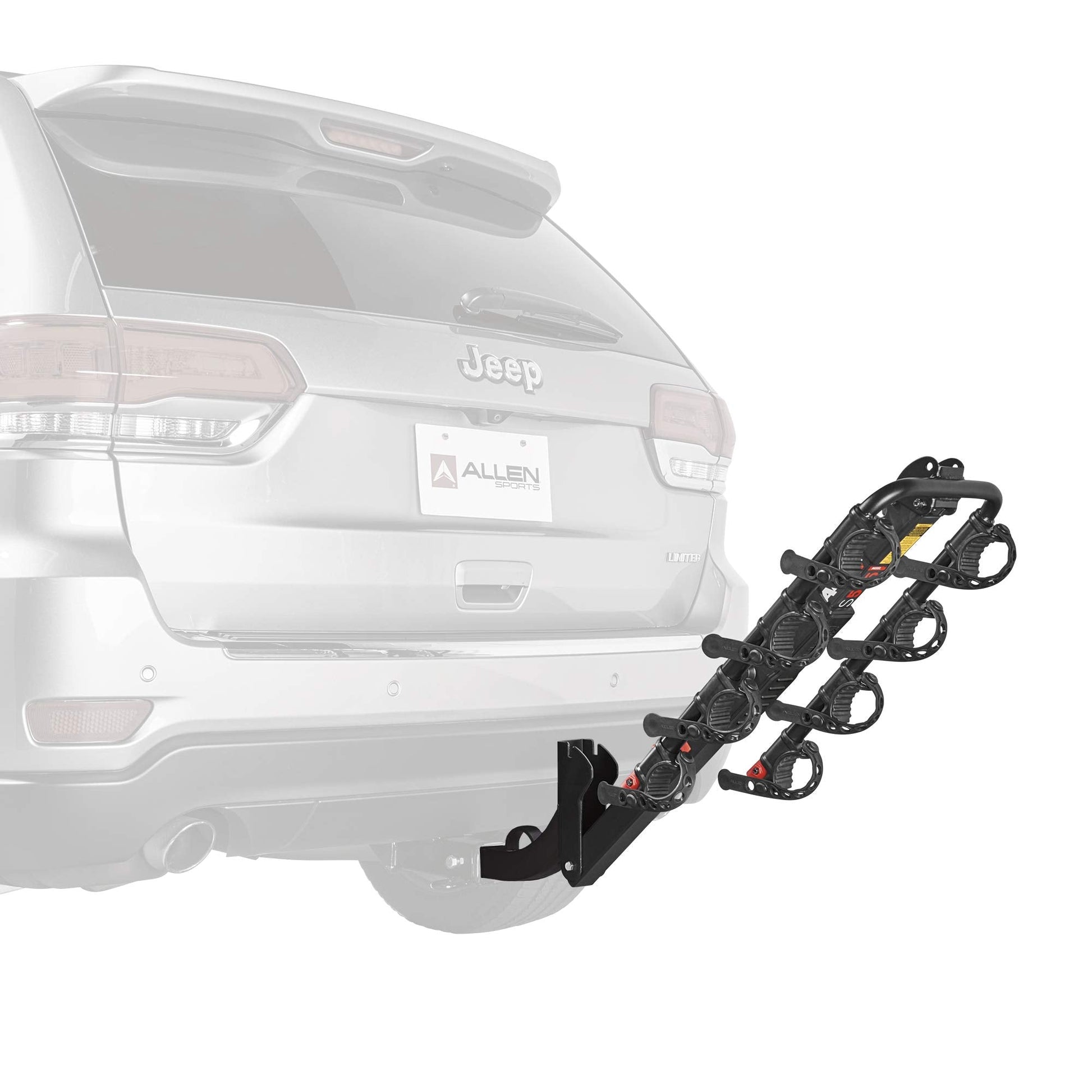 Details: Allen Sports' Premier Hitch Mounted 4 bike carrier mounts quickly and easily to your 2' trailer hitch. The arms 'snap' into place right out of the box. Allen's new dual compound cradle system securely holds your bicycles in place and the rack's large padded Spine Shield protects your bicycles as well. In addition to the easy folding arms on this rack, the new innovative internal tilt away release makes it a snap to access your vehicle's rear lift gate.