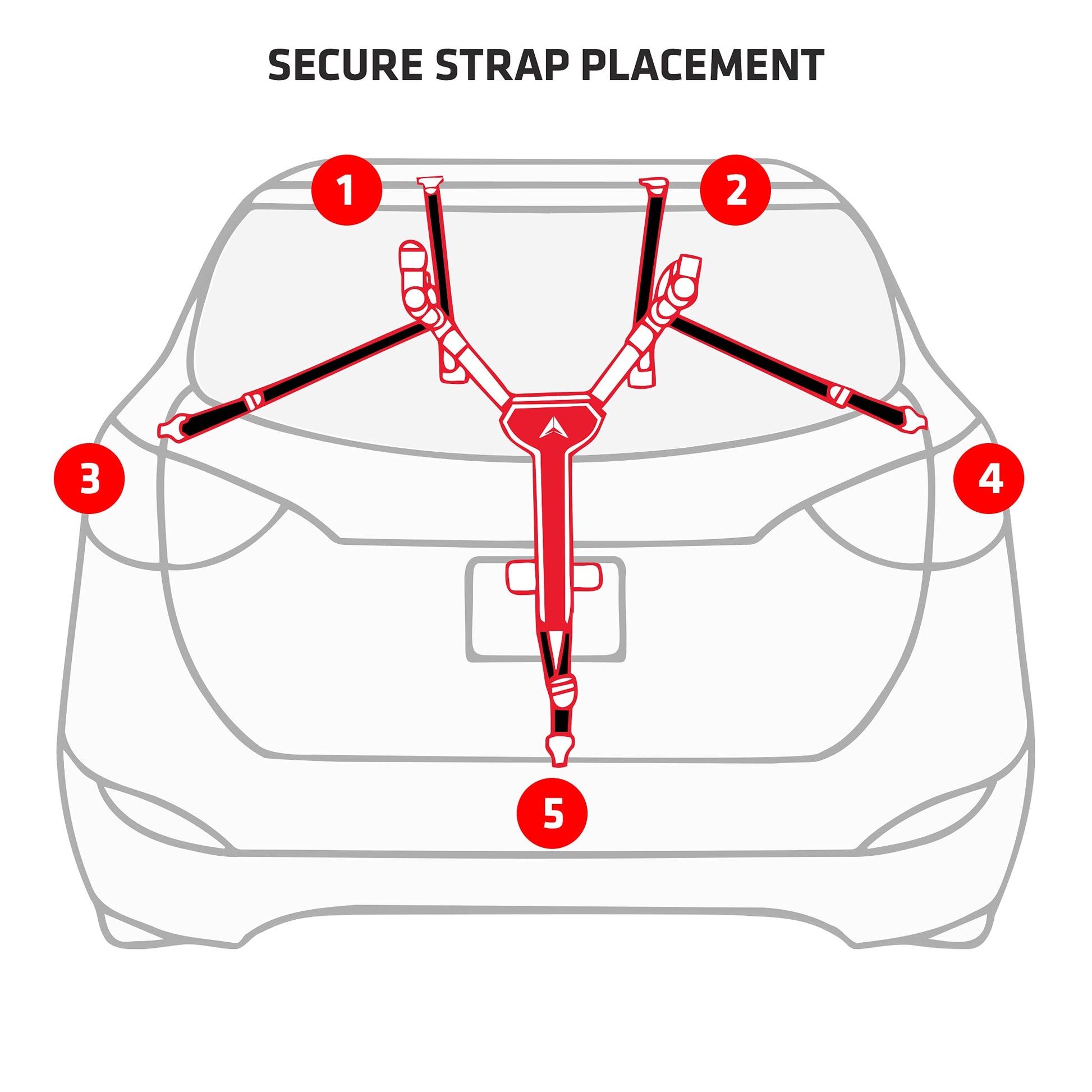 Need an on the spot two bike carrier but don't want to carry a full sized rack around? Turn to the Allen MT 2 ultra-compact two bike carrier, which folds up small and fits in almost any bag, including your backpack. Ideal for traveling, commuting, and other occasions when a portable bike rack might come in handy, the rack is small yet secure, with three padded legs that rest against your vehicle and three adjustable straps that secure to your car's hatchback or trunk gaps. Just as importantly, the rack holds your bikes in a safe position thanks to the tie downs and padding, which combine to keep your bikes from rocking or making contact with your vehicle. And when you're done using the rack, simply fold it up and store it inside the included carrying bag. The two bike rack which sports a gray powder coated finish is designed to fit sedans, hatchbacks, minivans, and SUVs.