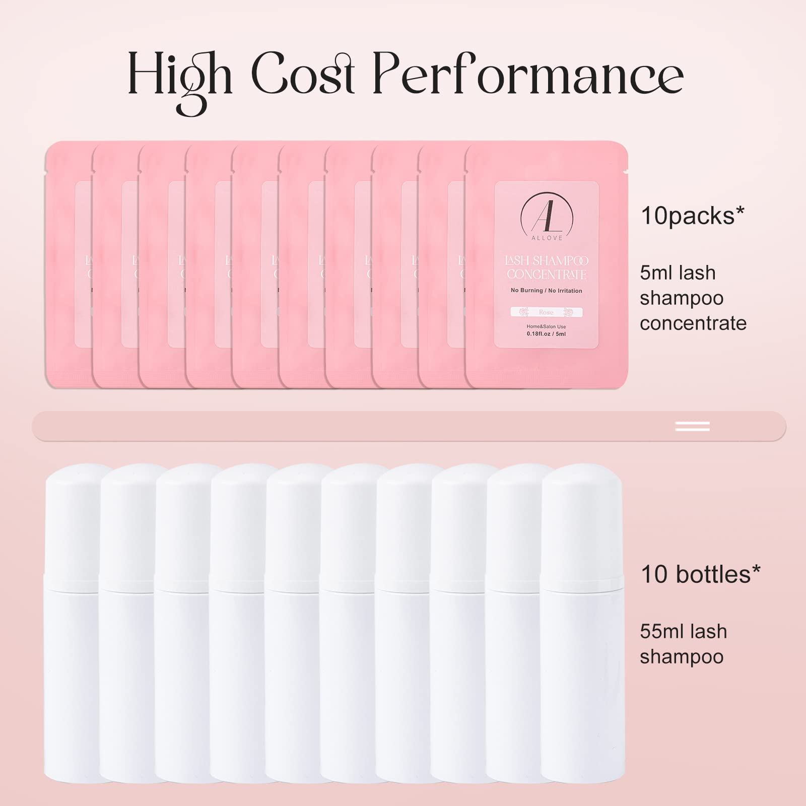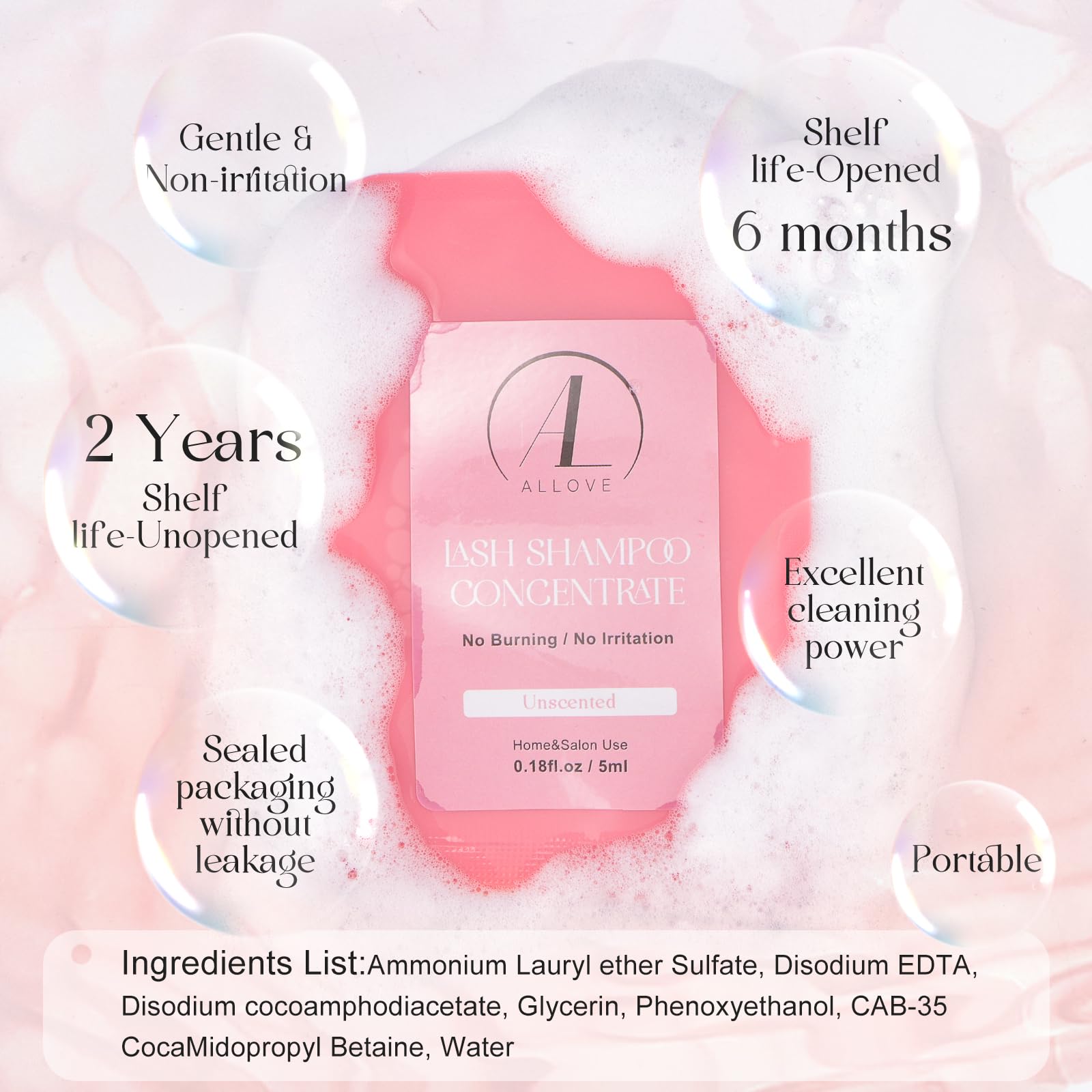 ALLOVE Lash Shampoo Concentrate 5ml*10, Sensitive and Non-irritate Extension Cleanser for Salon & Home Use - Lavender