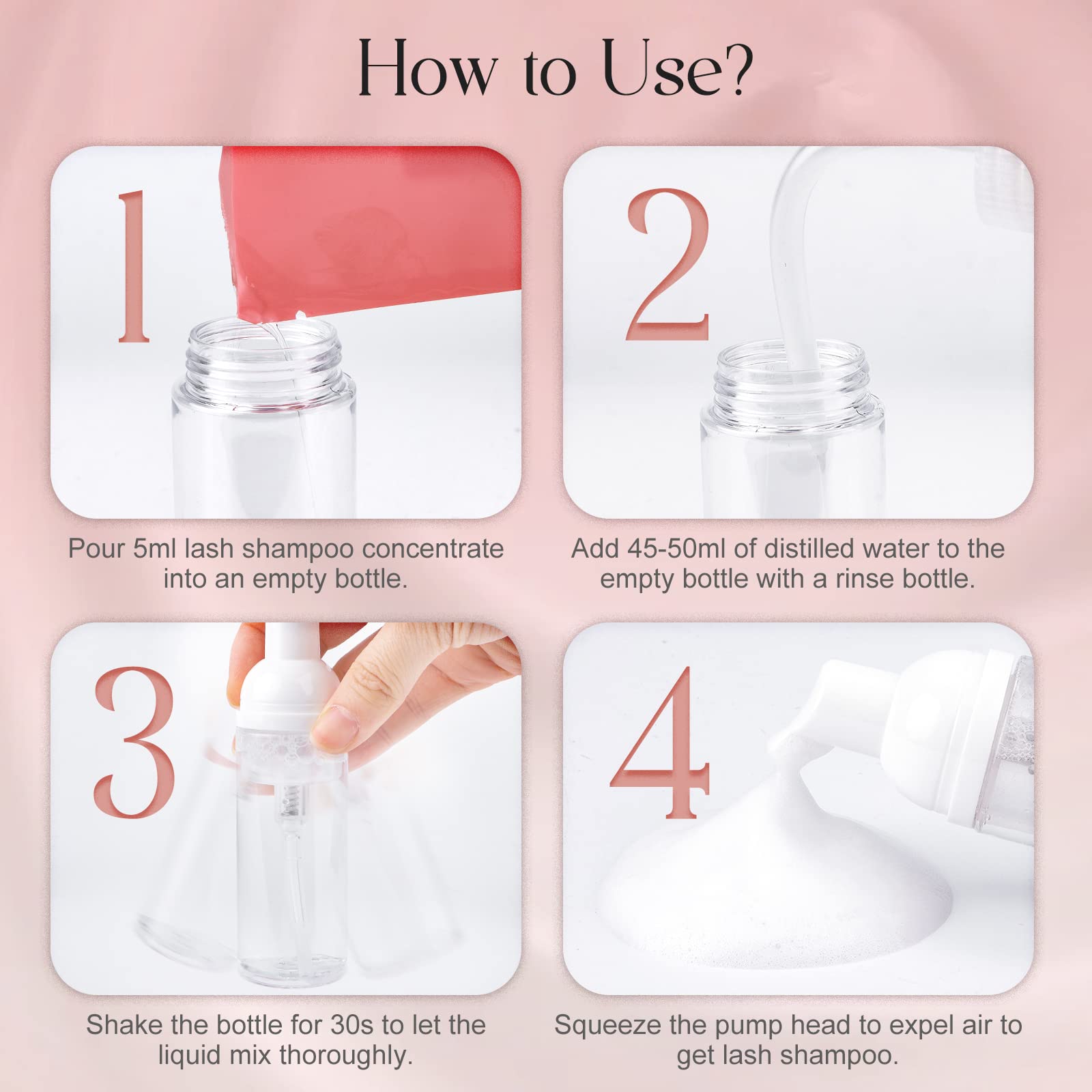 - Same Effect as Lash Shampoo: The diluted concentrate has the same cleaning power as eyelash cleanser for extensions. It can clean mascara easily and remove eyelash oil and cosmetic residues. eyelash shampoo can also prevent the phenomenon of glue whitening, enhance the adhesiveness and maintenance time of the glue.