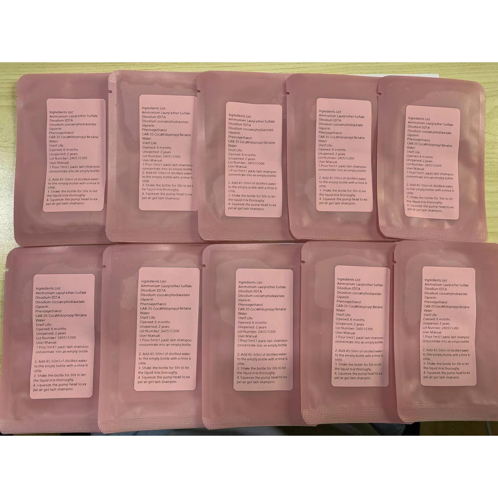 - High Cost Performance: 5ml*10 lash shampoo concentrate = 500ml lash shampoo for lash extensions. Take only one sachet at a time for mixing to avoid contamination of the eyelash extension cleanser for a long time. Make your whole grafting operation safer and thus reduce the discomfort of your clients.