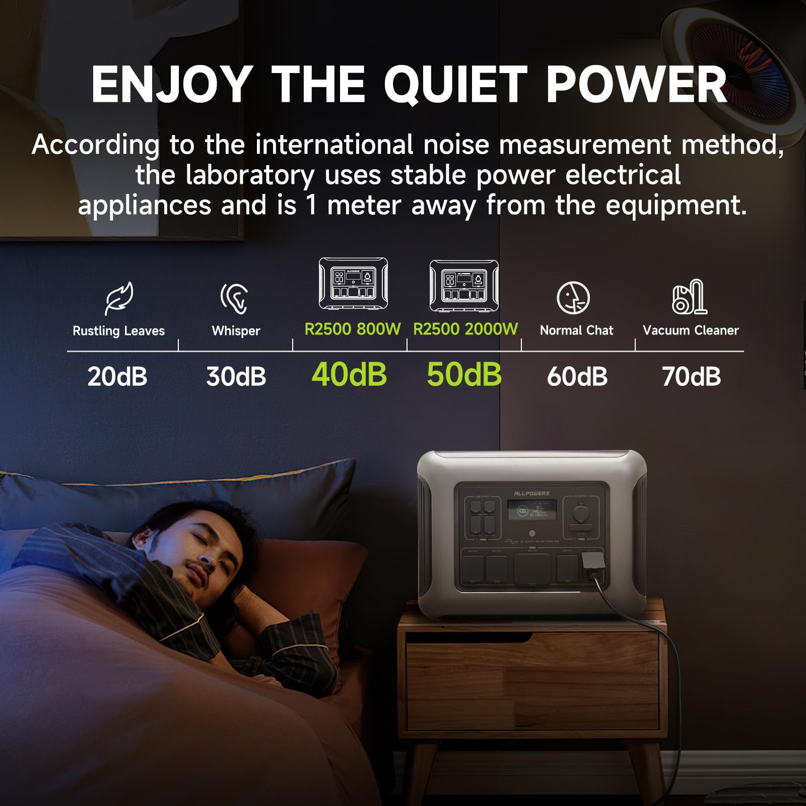 - 【Safe and Durable LiFePO4 Power Station】: ALLPOWERS R2500 features LiFePO4 batteries, maximum battery capacity is higher than 80% after 3500 cycles of charging and 50% after 6500 cycles. Eco mode can shut down R2500 at a fixed time, and BMS can optimize the internal current cycle, making R2500 regular use up to 10 years.