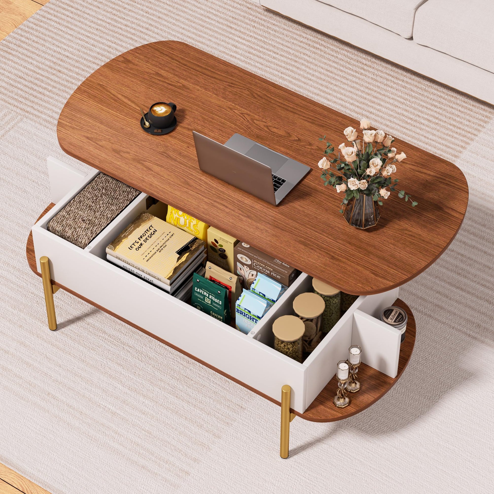 - [Ample Storage & Versatile Use]: The oval coffee table has large hidden compartments and open storage on both sides, protecting your privacy and easy access. The contemporary style of the coffee tables for living room fits in well with other types of furniture, and the lift top table can be used for a variety of occasions, whether it's a work area, an entertainment space, or an occasional dining table.