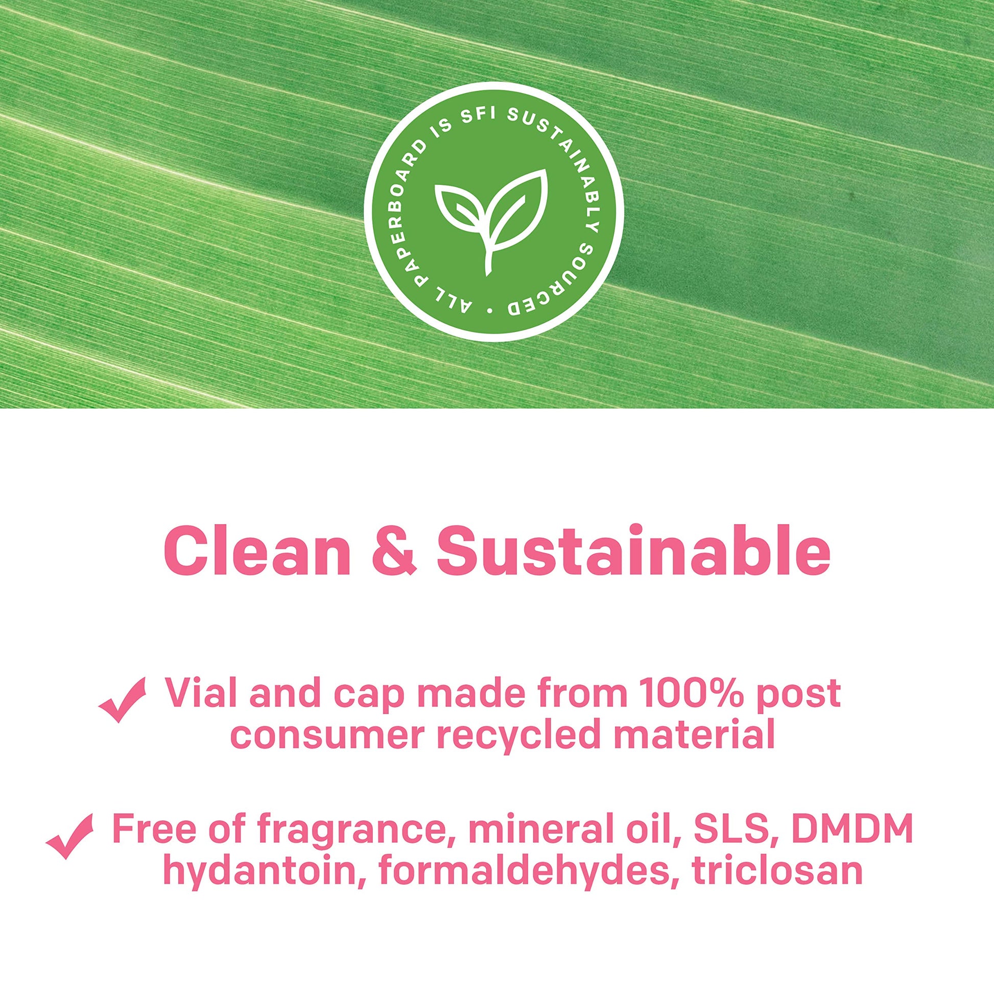 - FORMULATED WITHOUT: Parabens, phthalates, SLS, mineral oil, DMDM Hydantoin, formaldehydes, and Triclosan